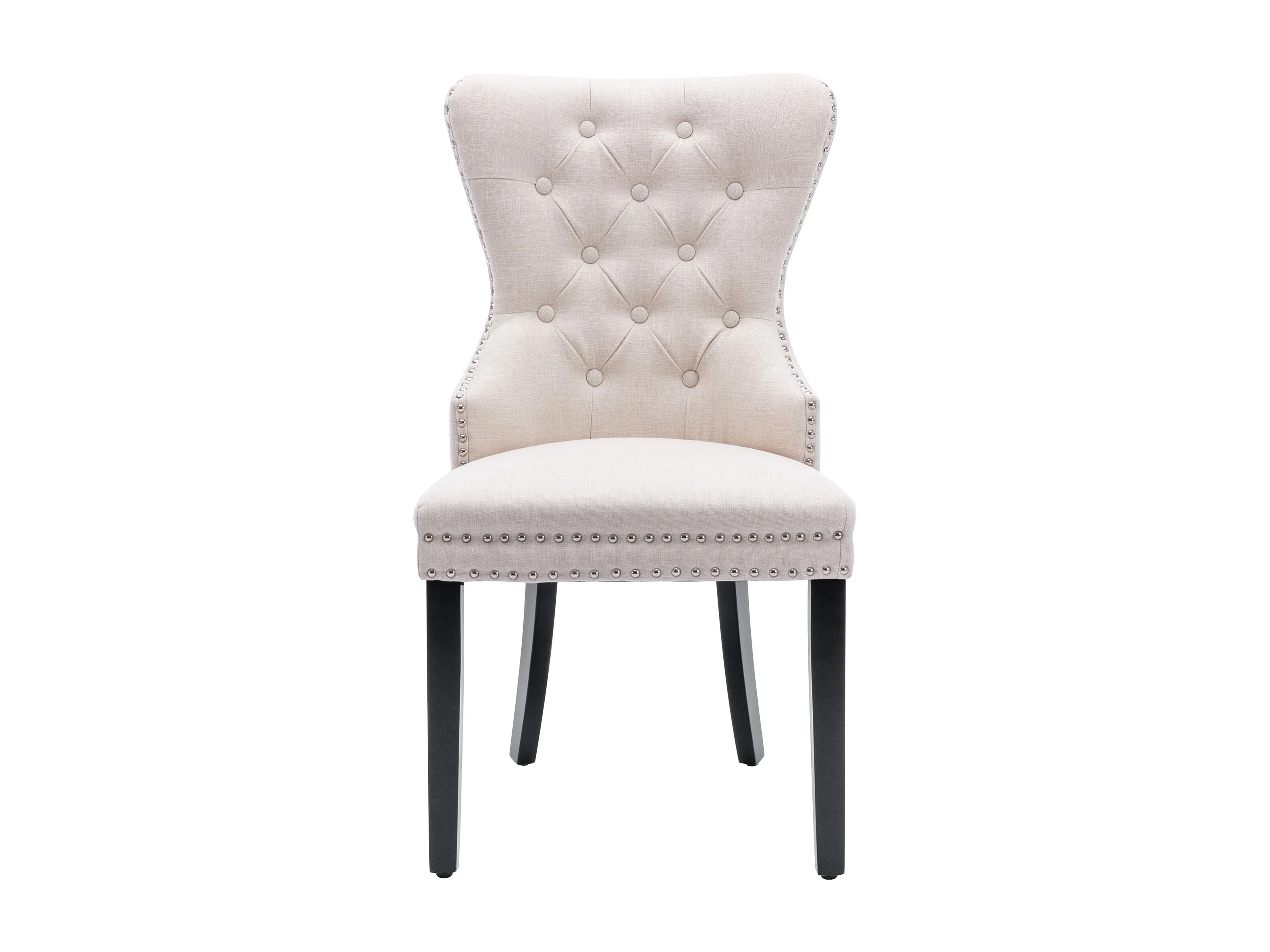 Juego de 2 sillas de comedor tapizadas en lino - 53 x 54 x 97 cm - patas de roble - sillón - beige
