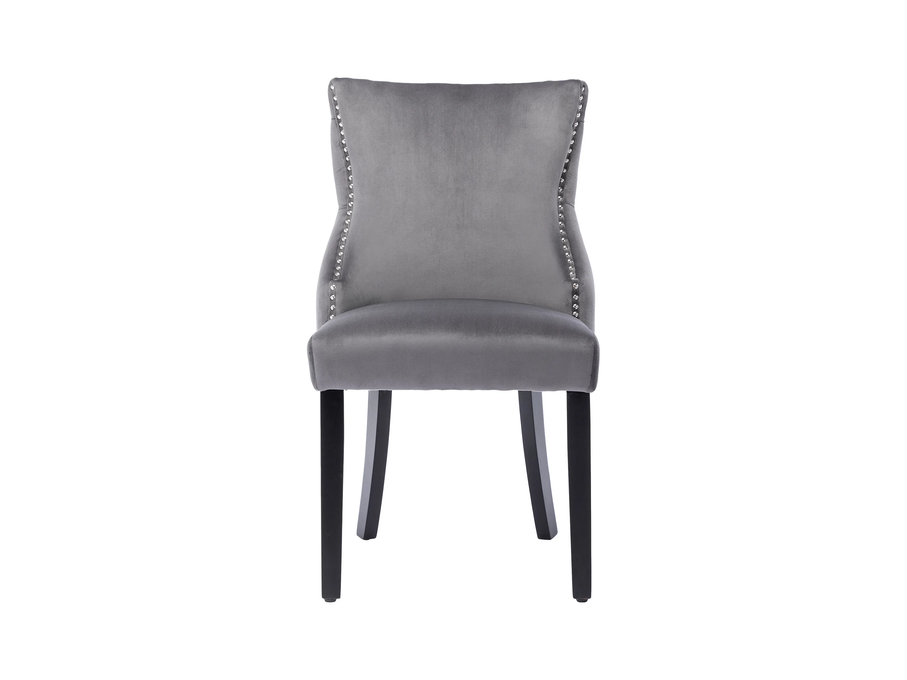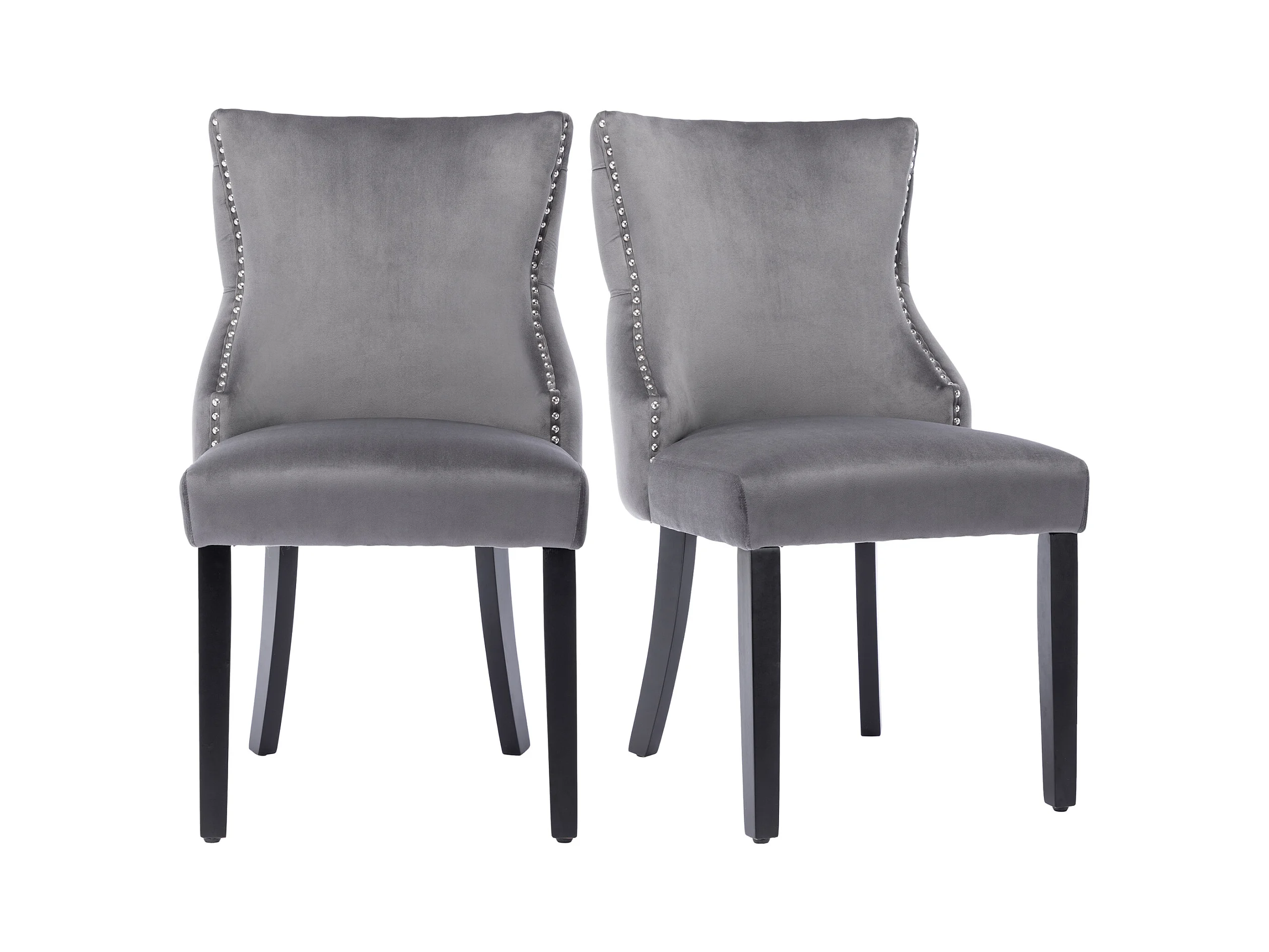 Juego de 2 sillas de comedor - terciopelo gris - con respaldo abotonado y patas de madera negras