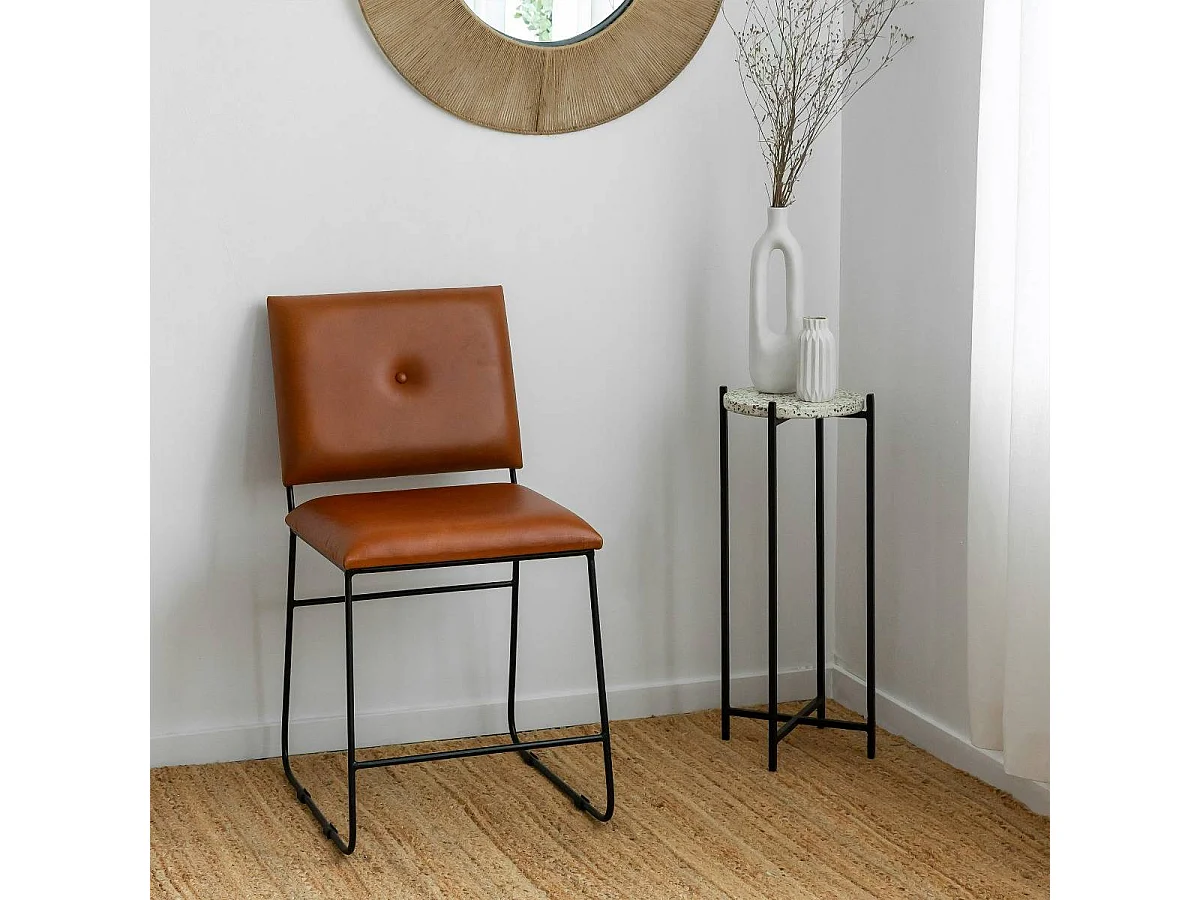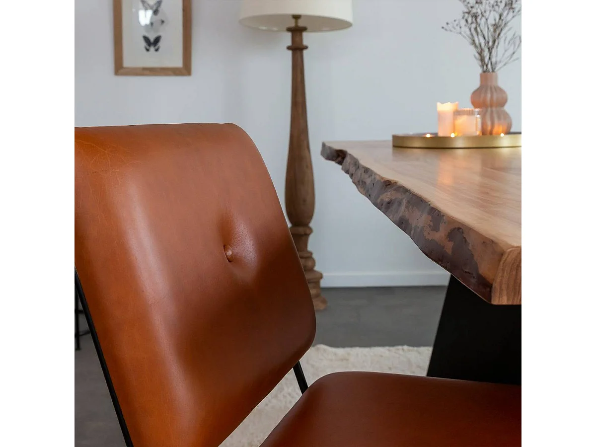 Juego de 2 sillas de cuero marrón y metal negro Arthur con diseño vintage y acabados modernos
