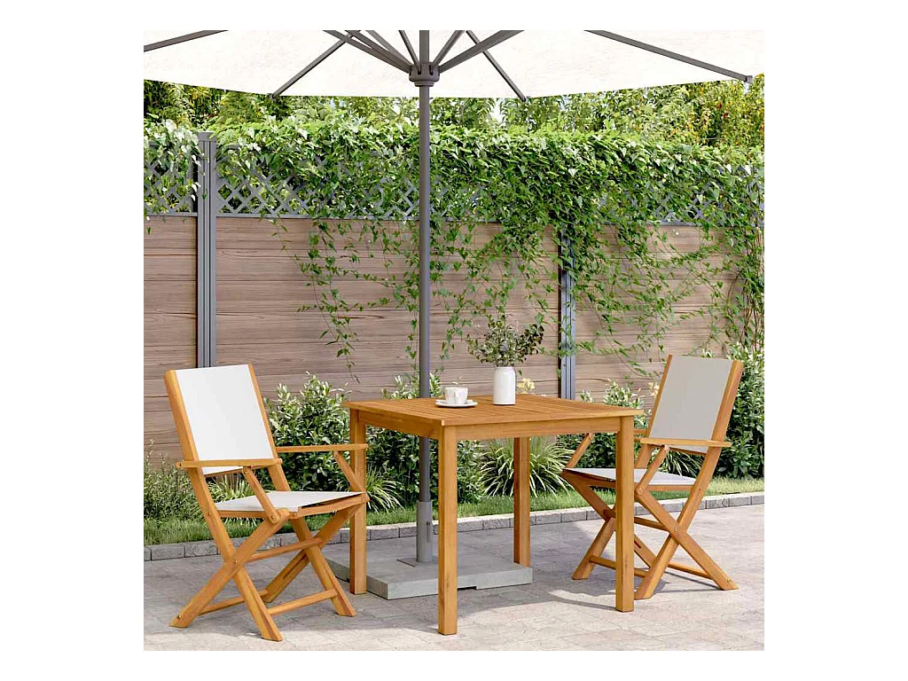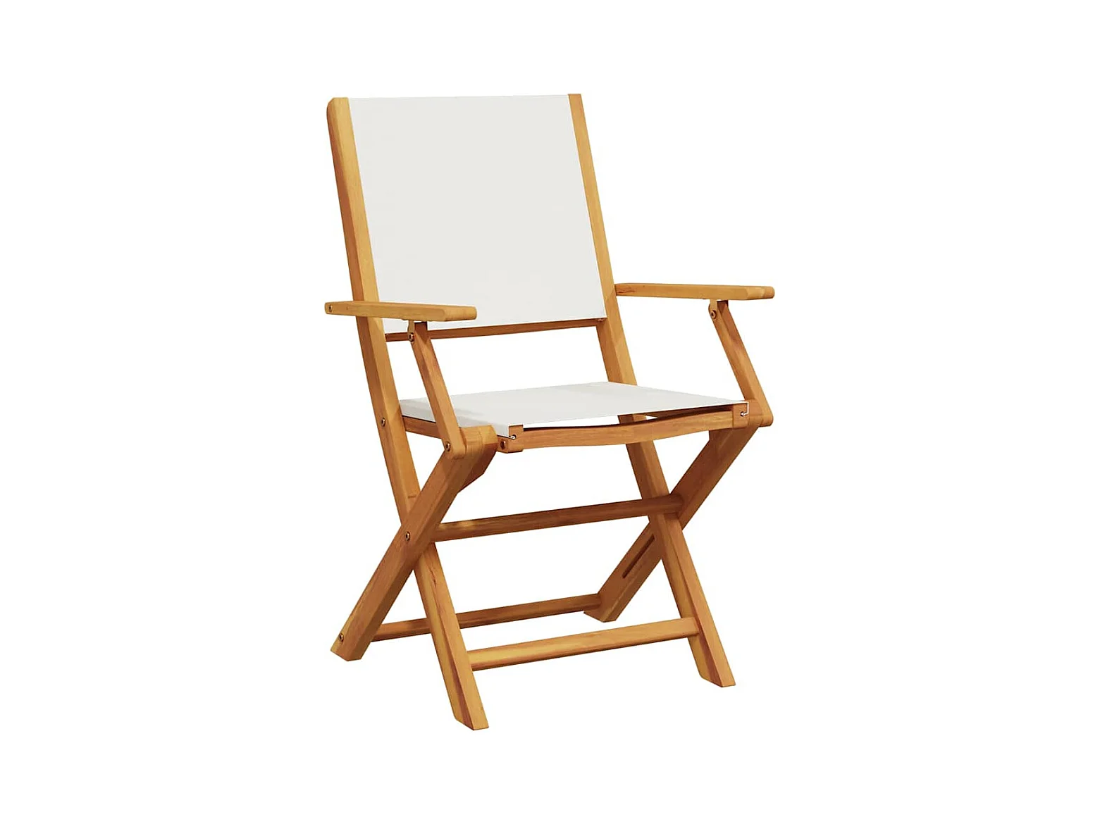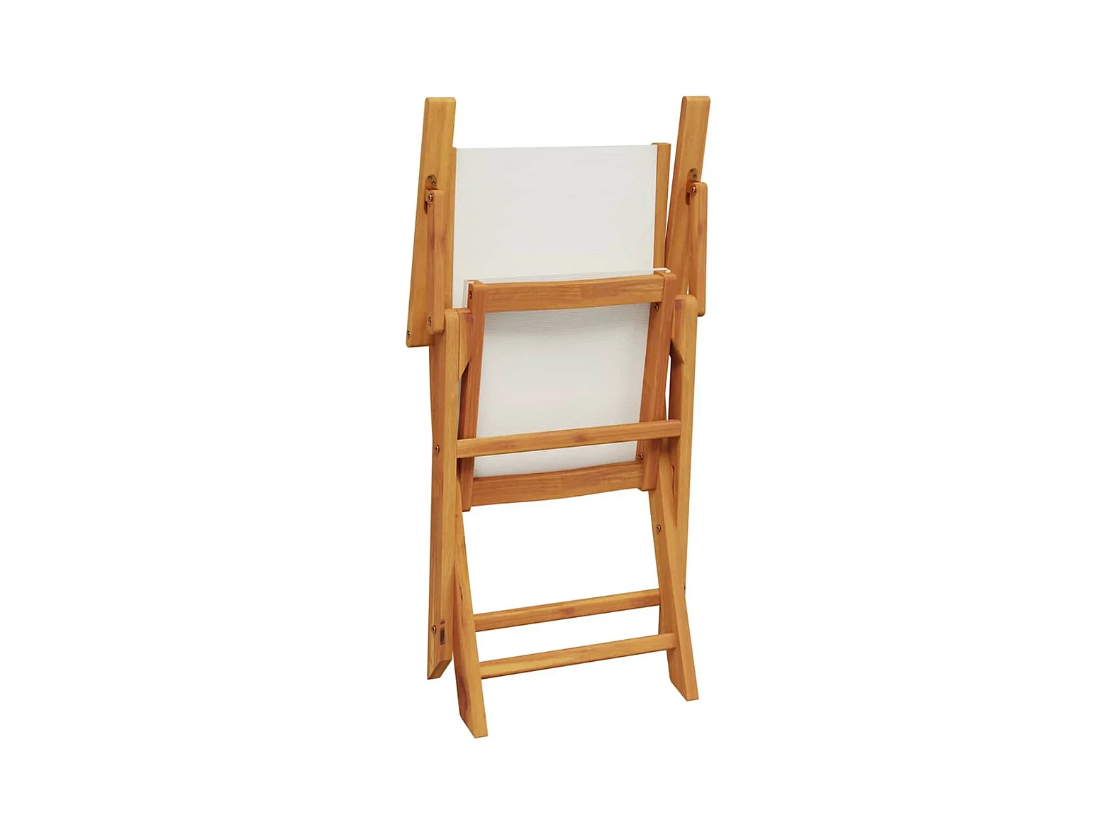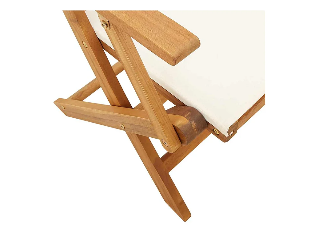 Juego de 2 sillas de jardín de madera maciza de acacia color blanco crema y tela.
