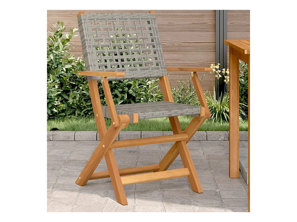 Juego de 2 sillas de jardín de madera maciza de acacia gris y ratán