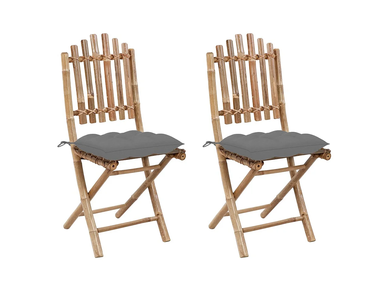 Juego de 2 sillas de jardín plegables con cojines de bambú