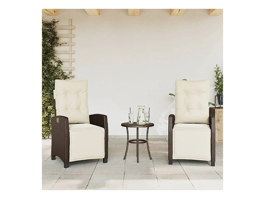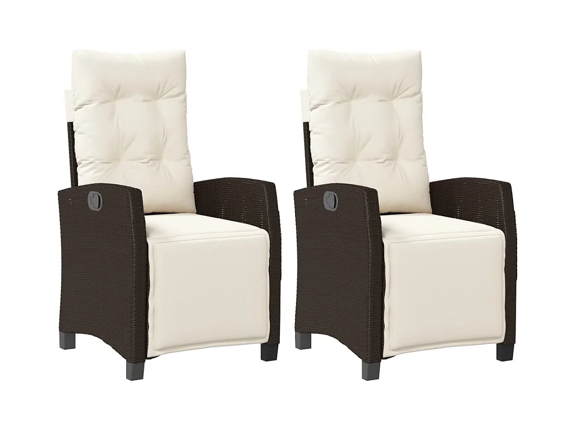 Conjunto de 2 sillas de jardín reclinables con cojines de ratán marrón