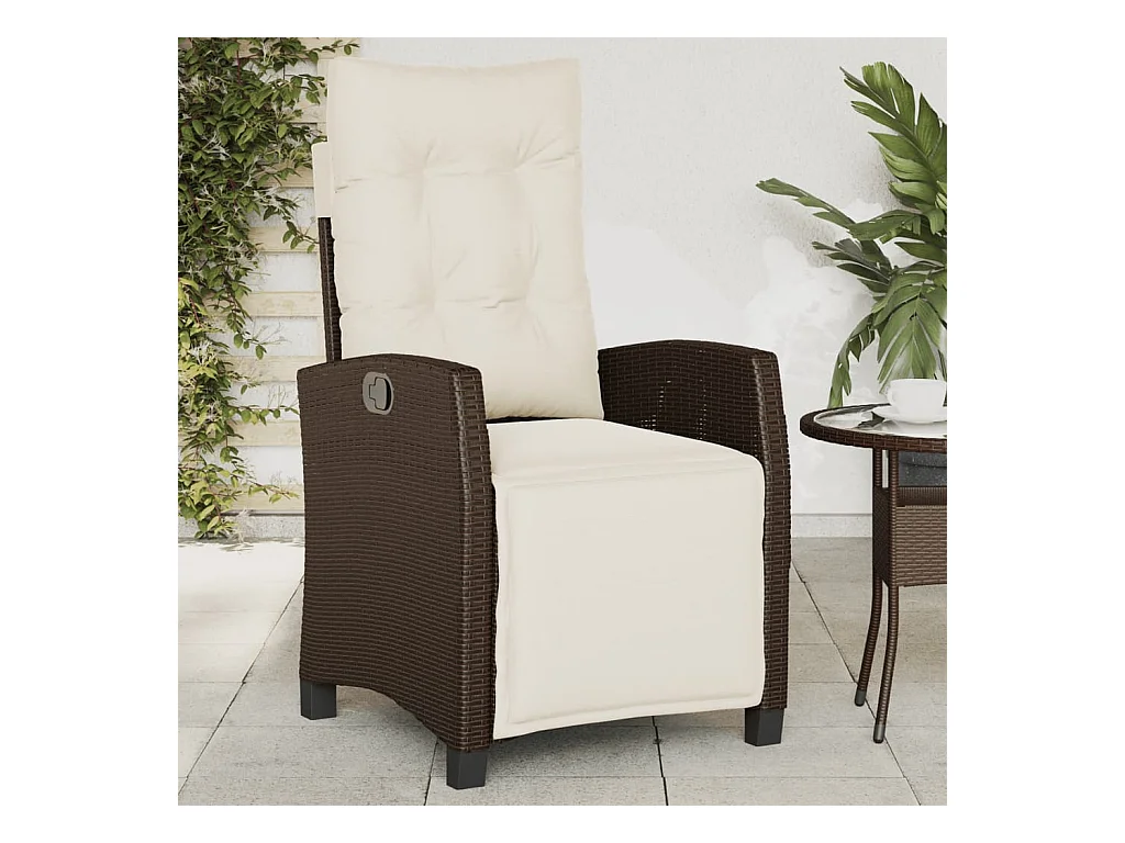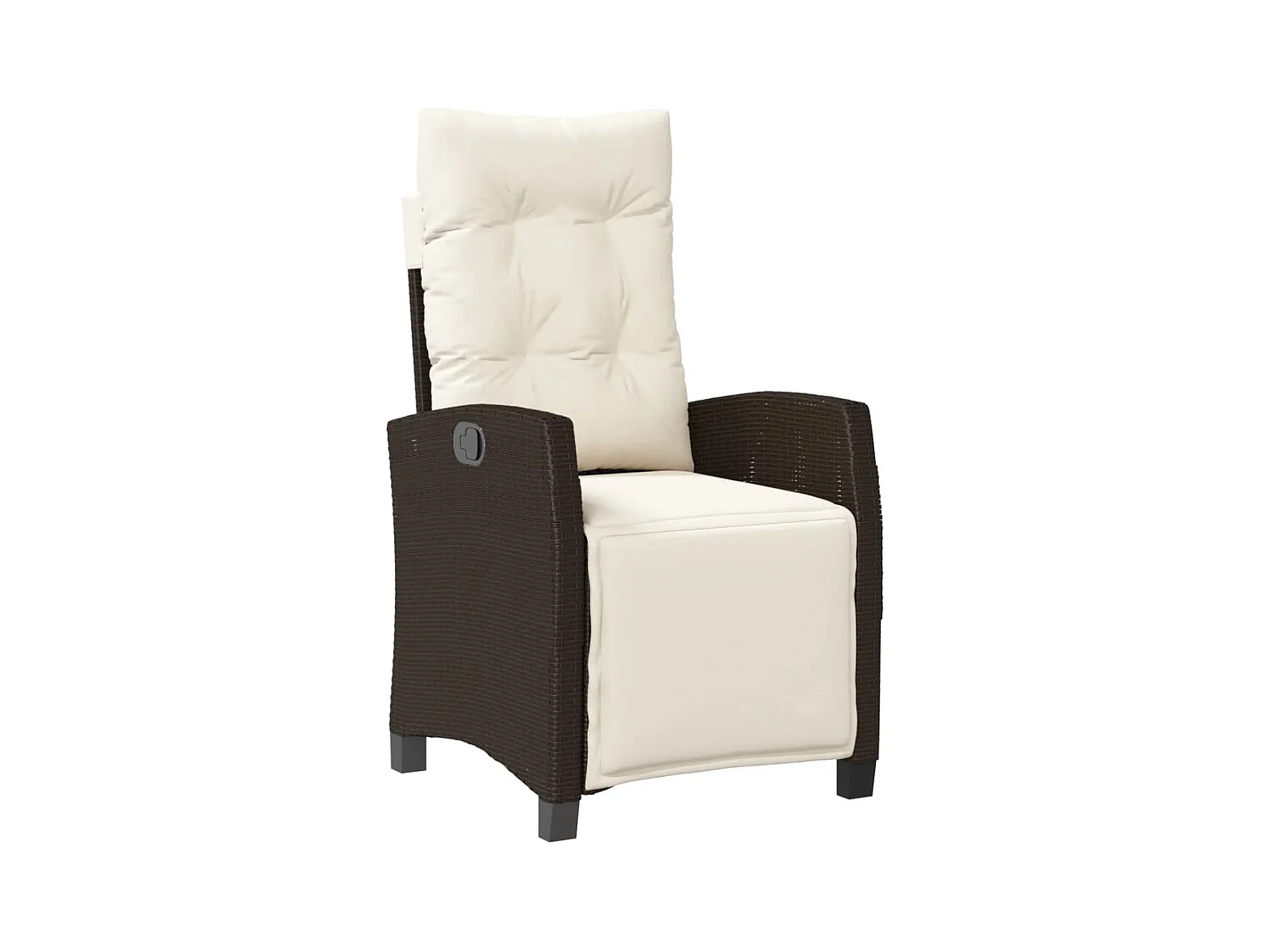 Silla de jardín reclinable con cojines de resina tejida marrón