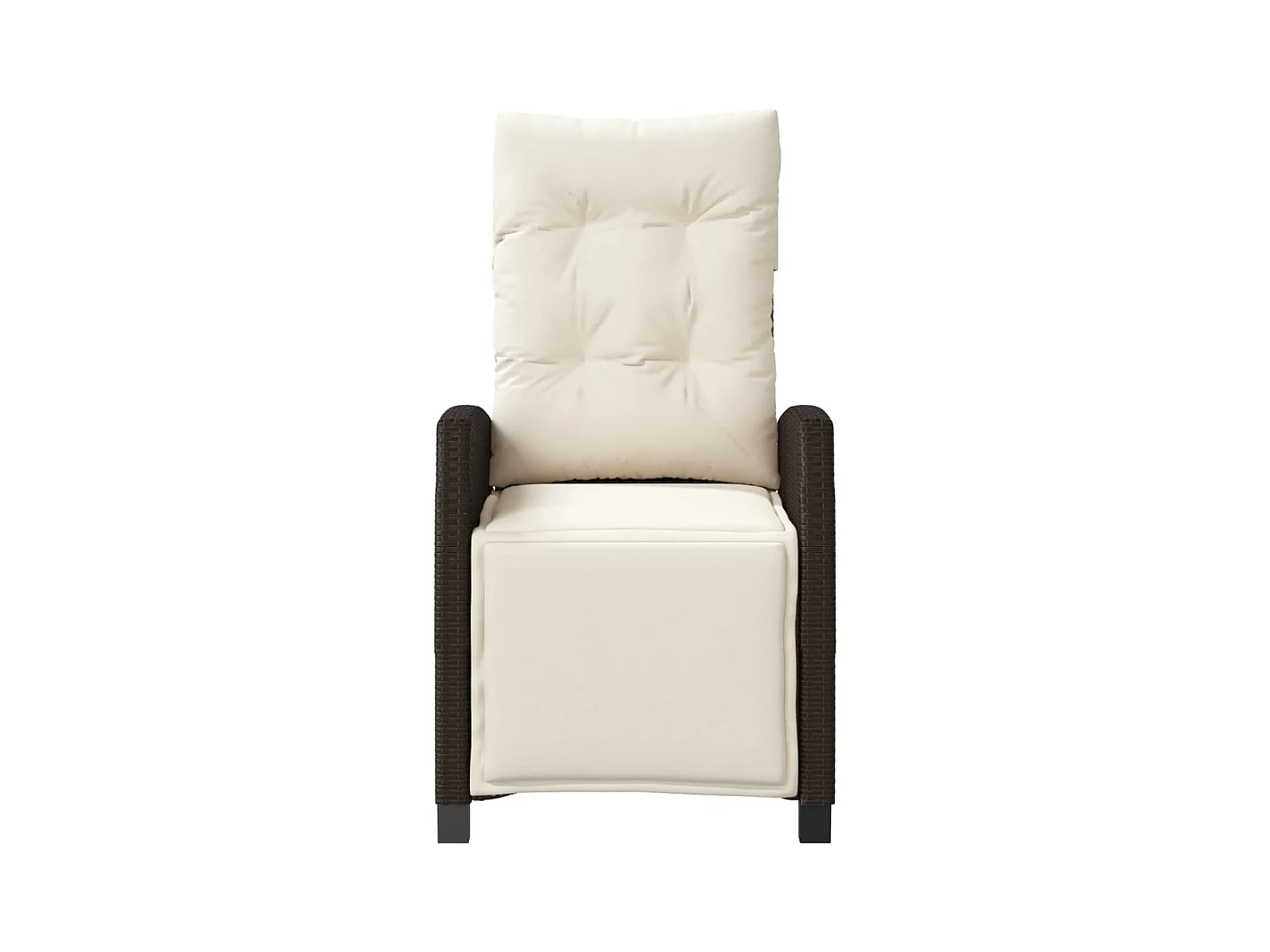 Sillón reclinable de jardín con cojines de ratán marrón claro