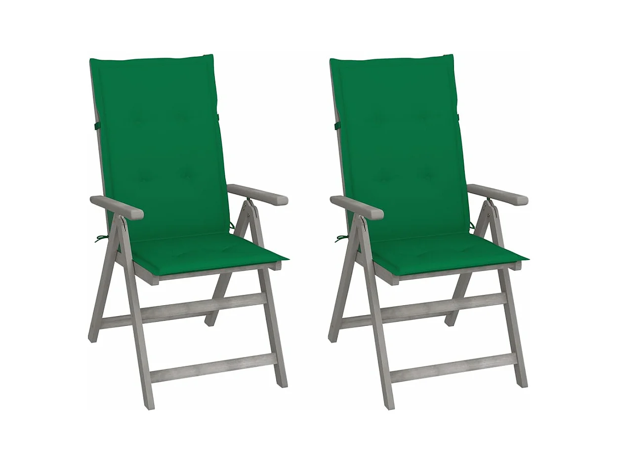 Juego de 2 Sillas de jardín reclinables madera maciza acacia cojines KOW35242