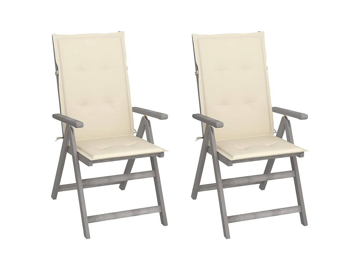 Juego de 2 Sillas de jardín reclinables madera maciza acacia cojines KOW35257