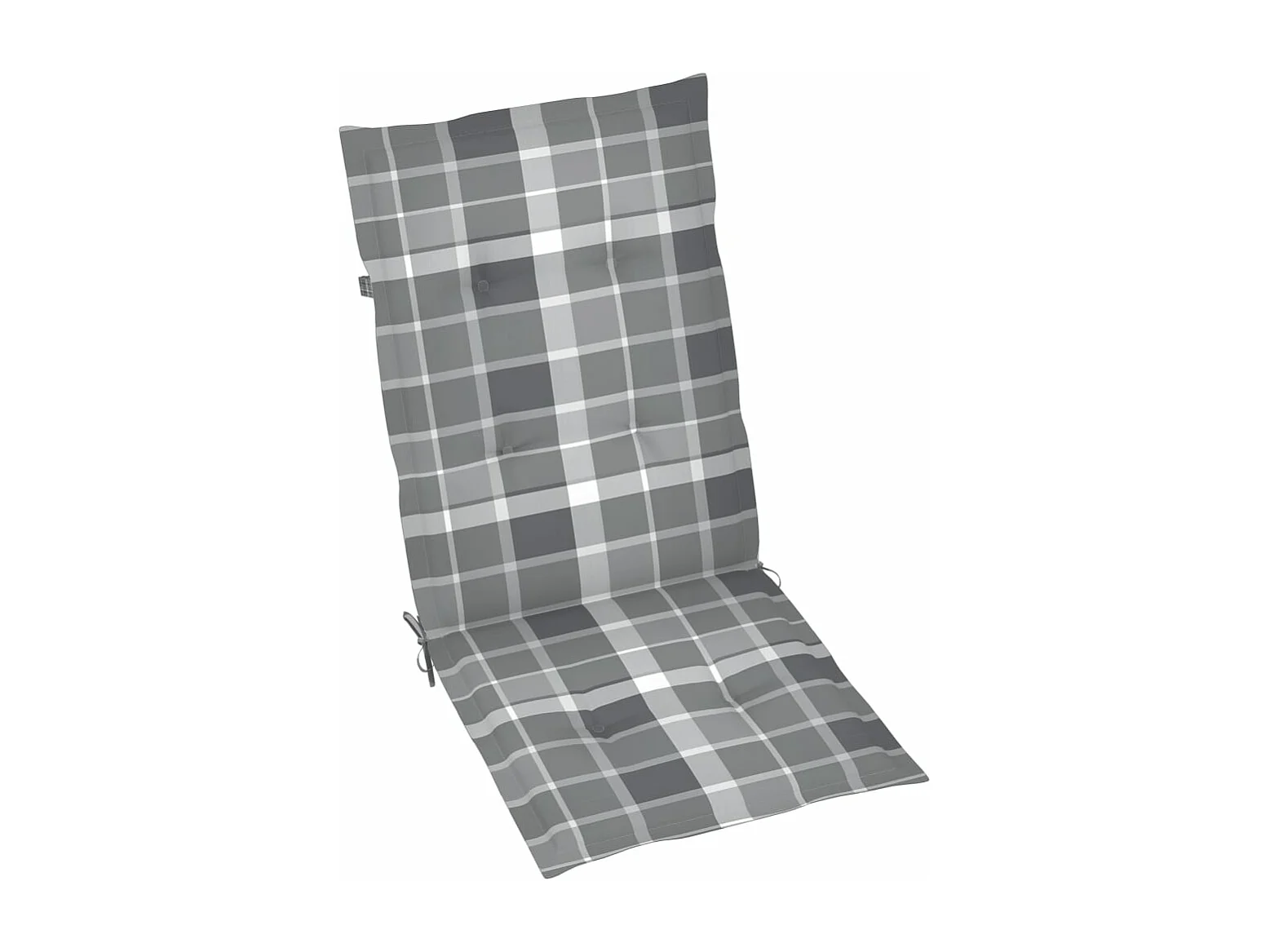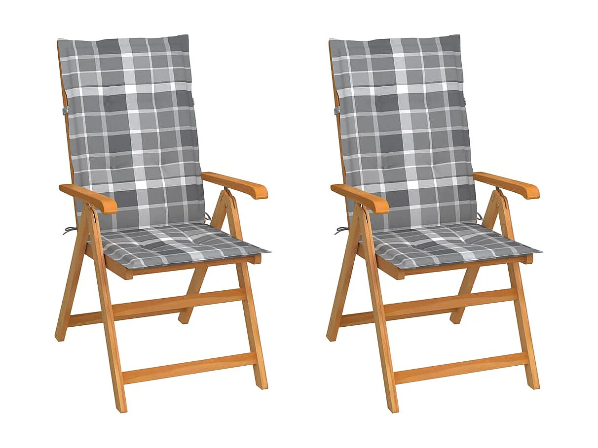 Sillas de jardín 2 unidades madera teca con cojines a cuadros gris