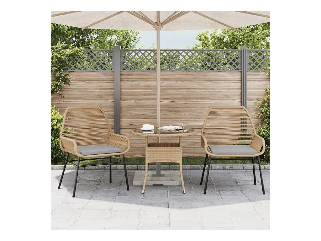 Juego de 2 sillas de jardín con cojines naturales en resina trenzada