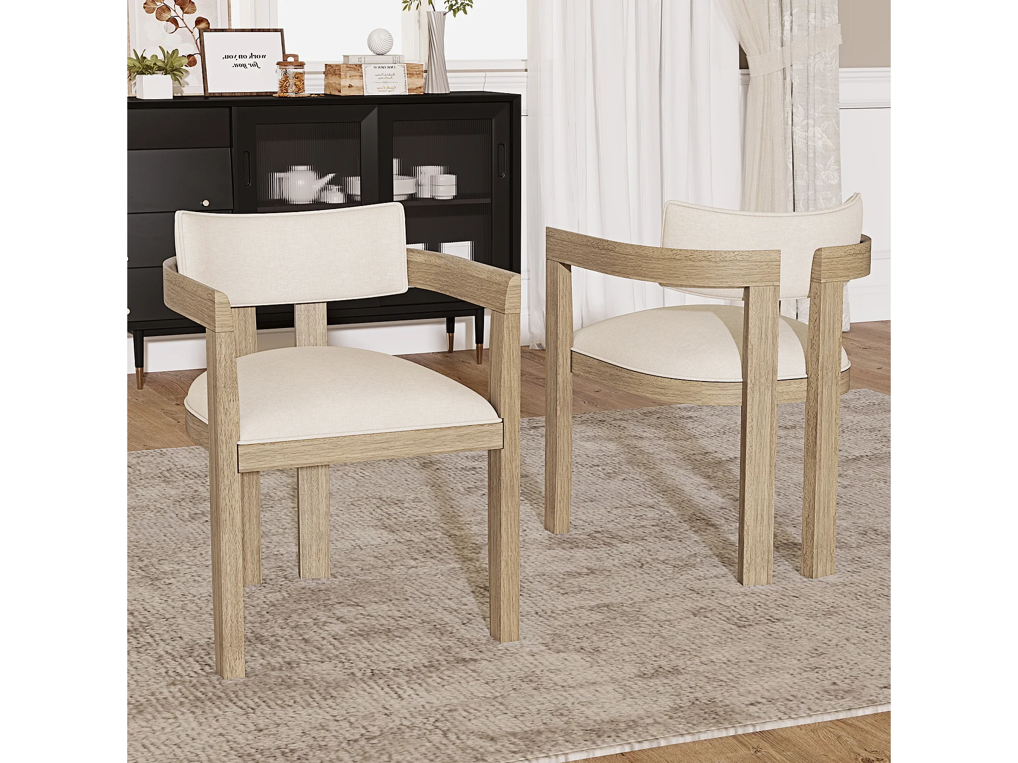 Juego de 2 sillas de madera y lino para comedores, salas de estar y cafeterías - Color natural claro