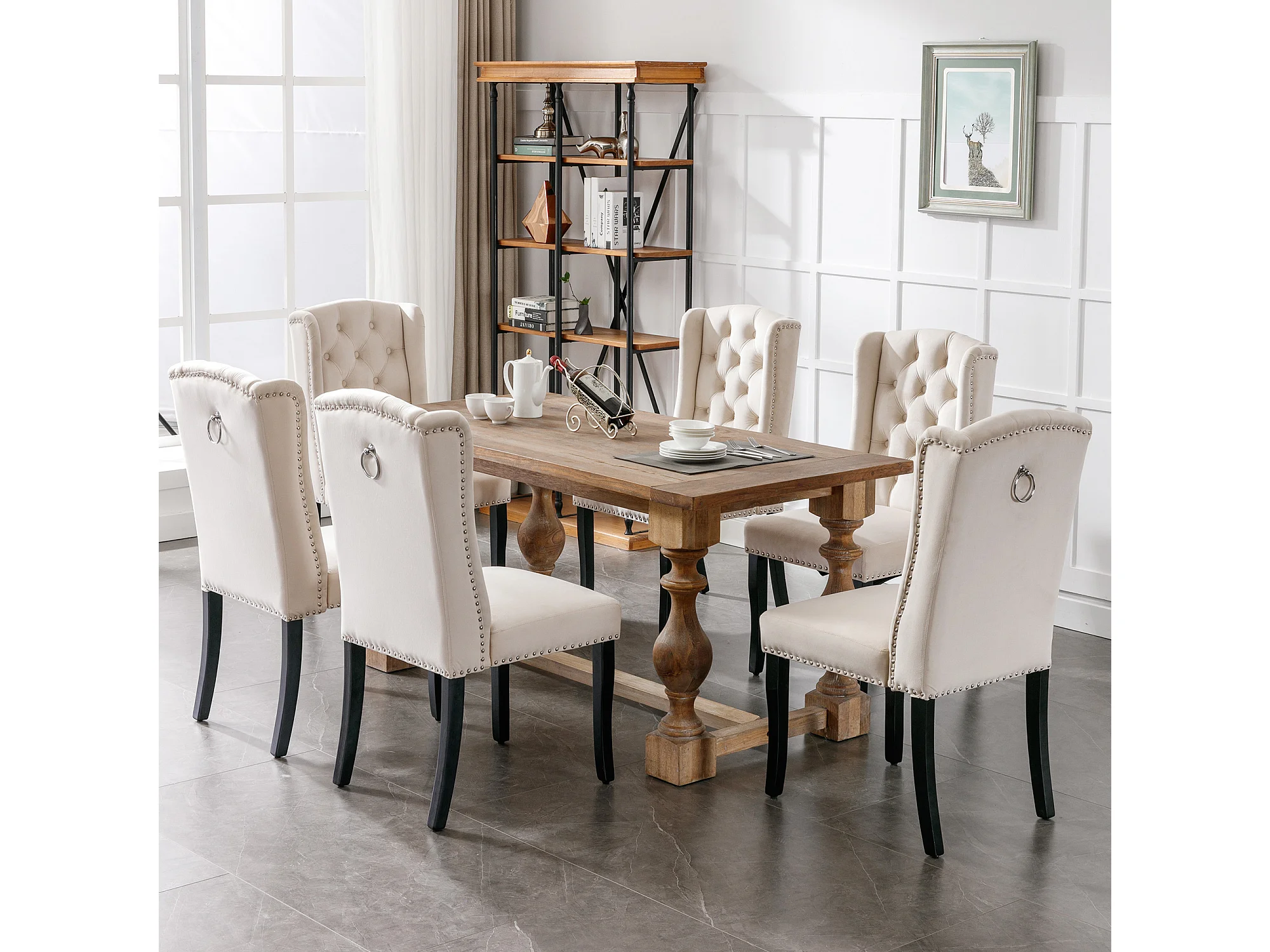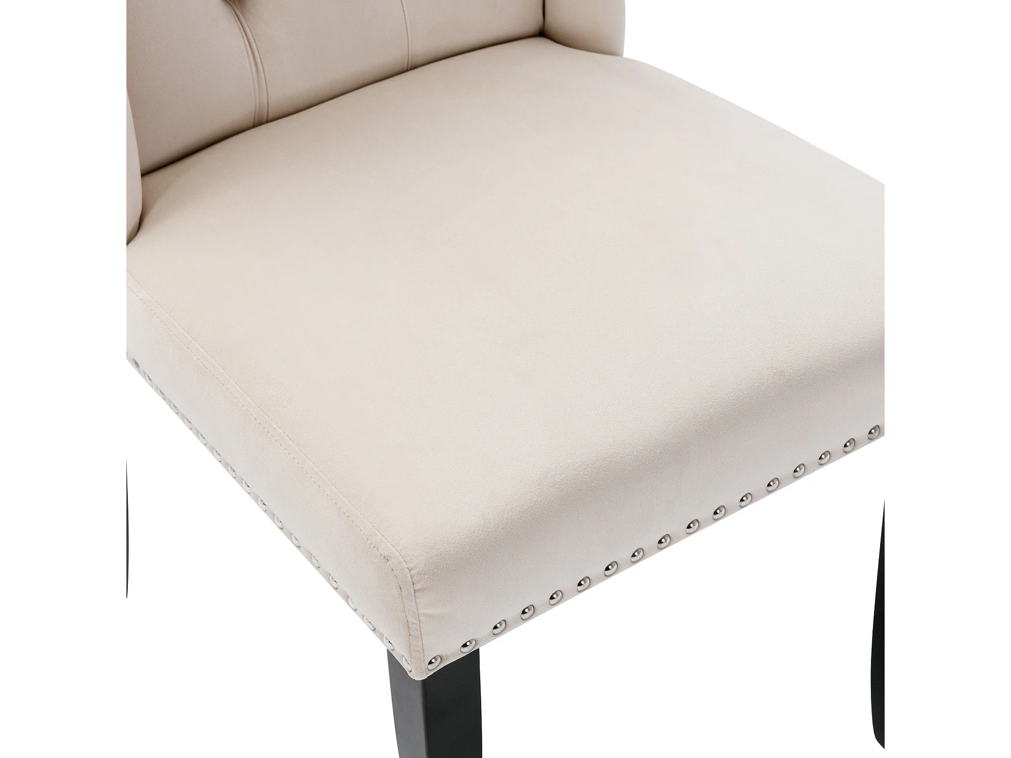 Juego de 2 sillas de comedor - asientos tapizados adornados con tachuelas decorativas y patas de madera maciza - terciopelo beige