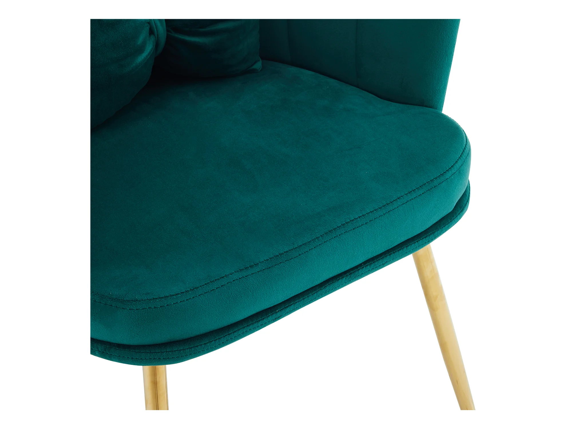 Juego de 2 sillas de terciopelo - con respaldo en forma de pétalo - patas de metal dorado - Verde abeto