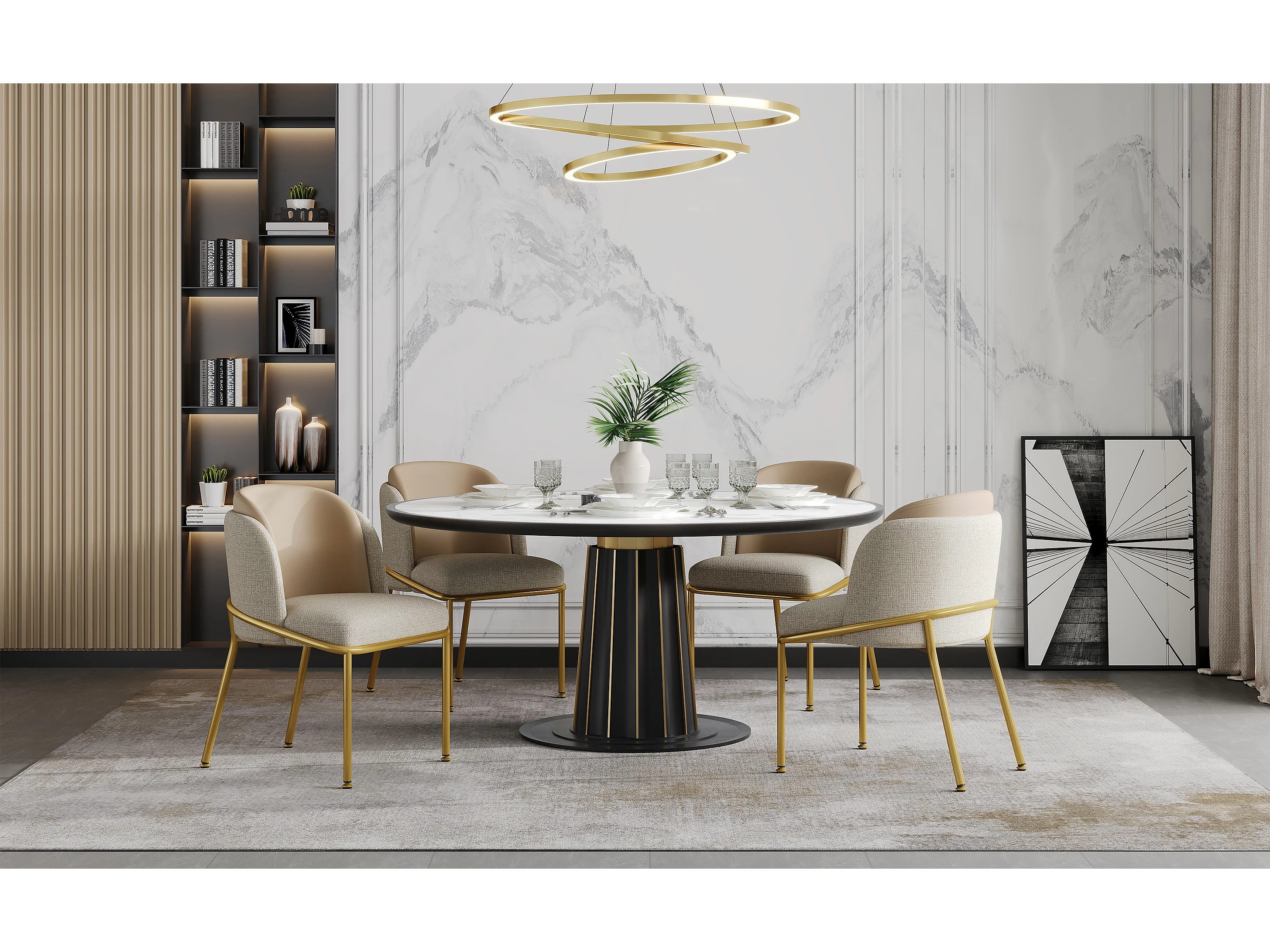 Juego de 4 sillas modernas, con pata inclinada y pies ajustables, beige + caqui