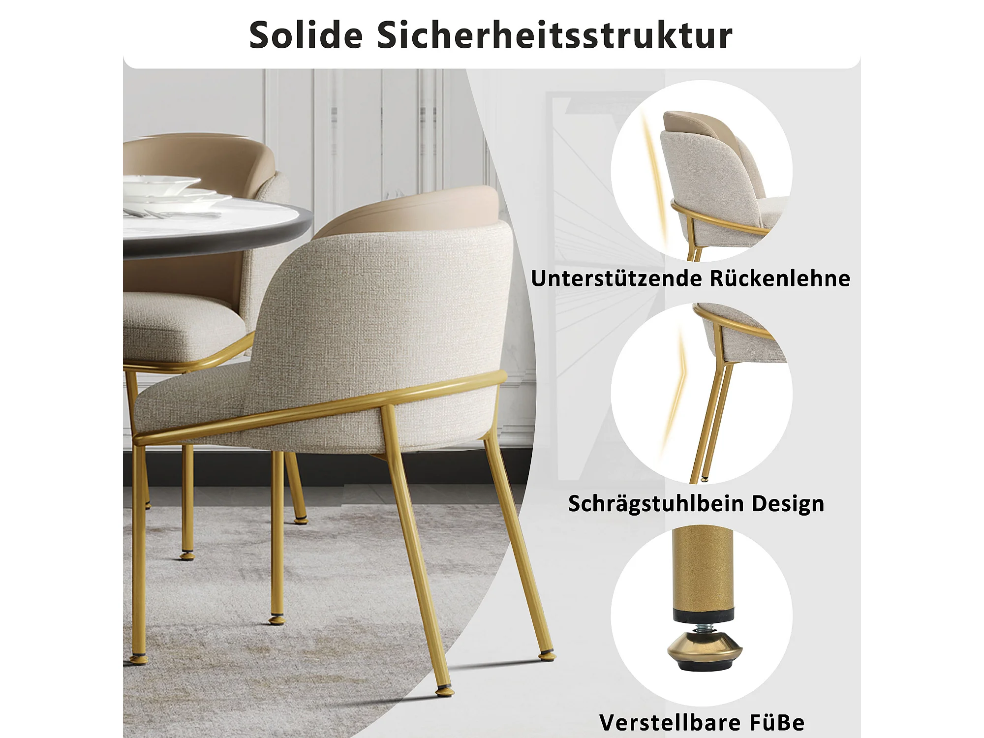 Juego de 2 sillas modernas, con pata inclinada y pies ajustables, beige + caqui
