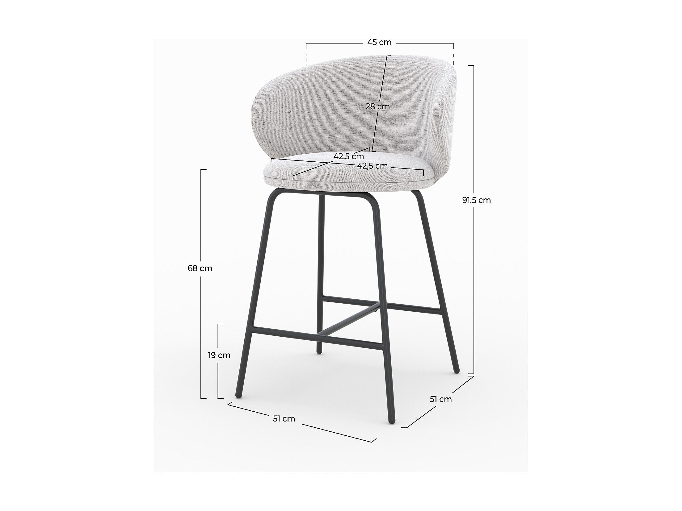 Set de 2 sillas para isla central en tela gris claro 68 cm - Cécilia