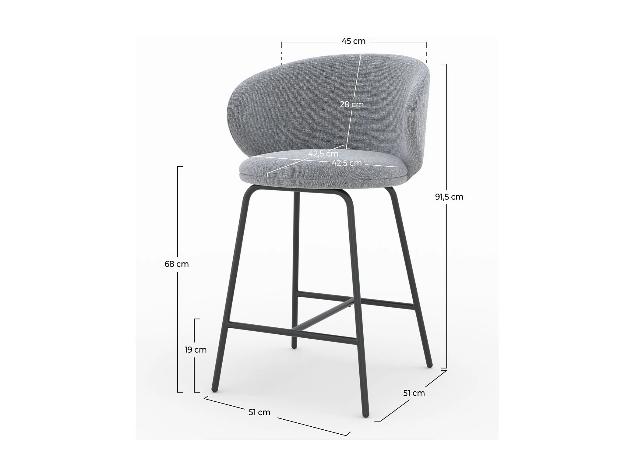 Set de 2 sillas para isla central en tela gris oscuro 68 cm - Cécilia