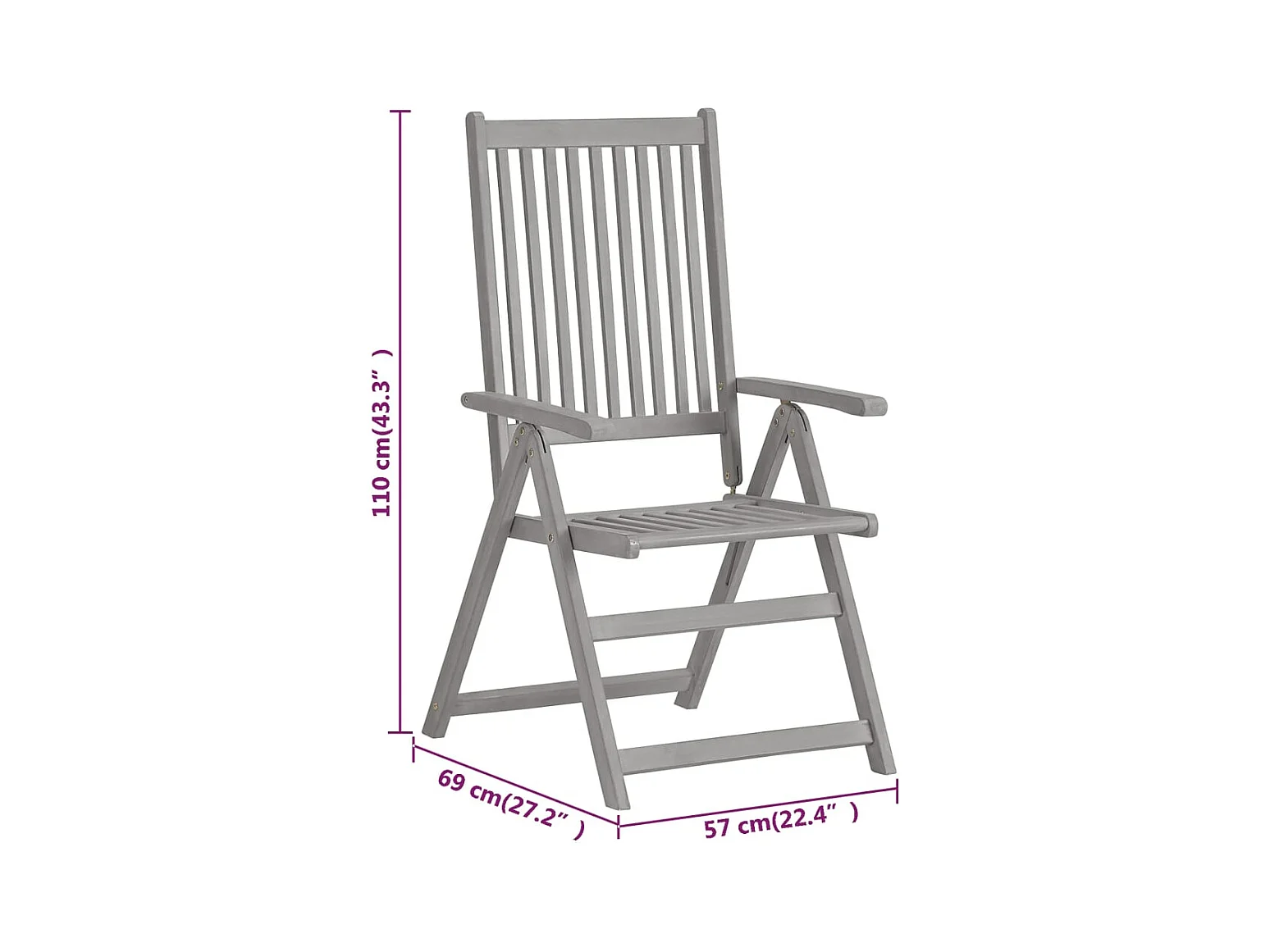 Juego de 2 sillas reclinables de jardín de madera maciza de acacia gris