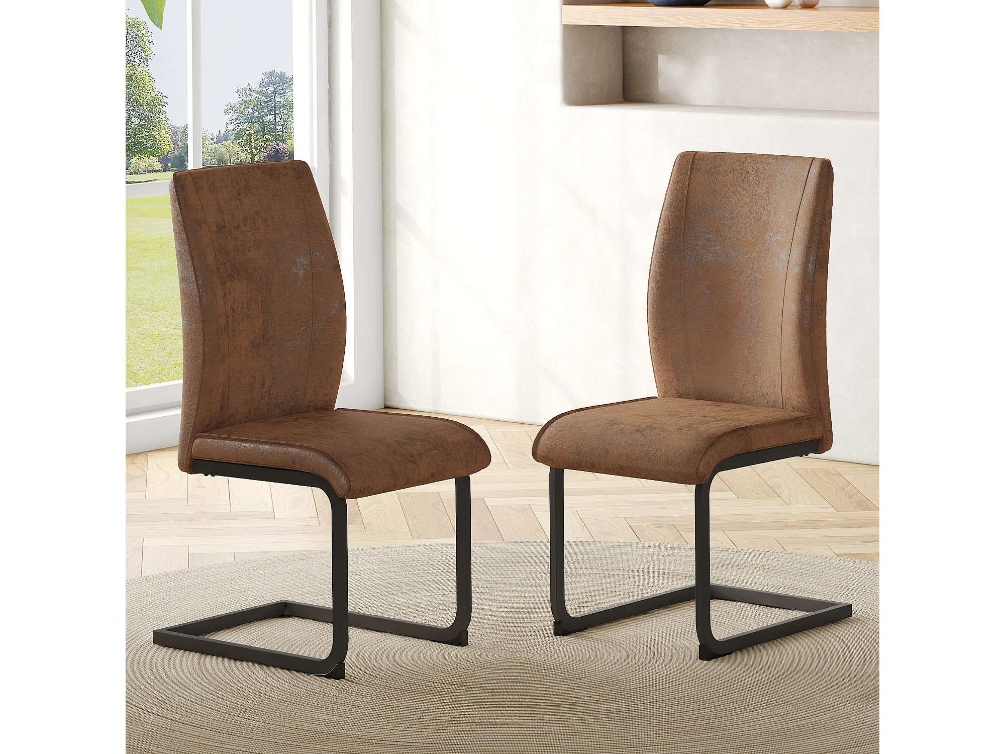 Juego de 2 sillas marrones con patas negras, tapizadas en piel sintética PU.