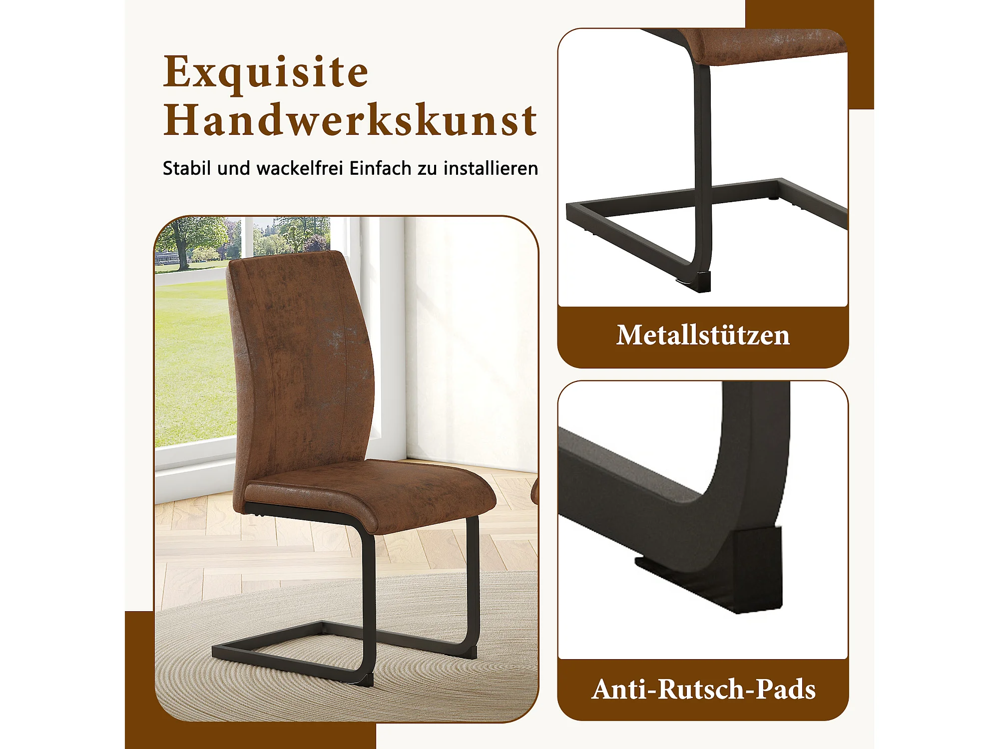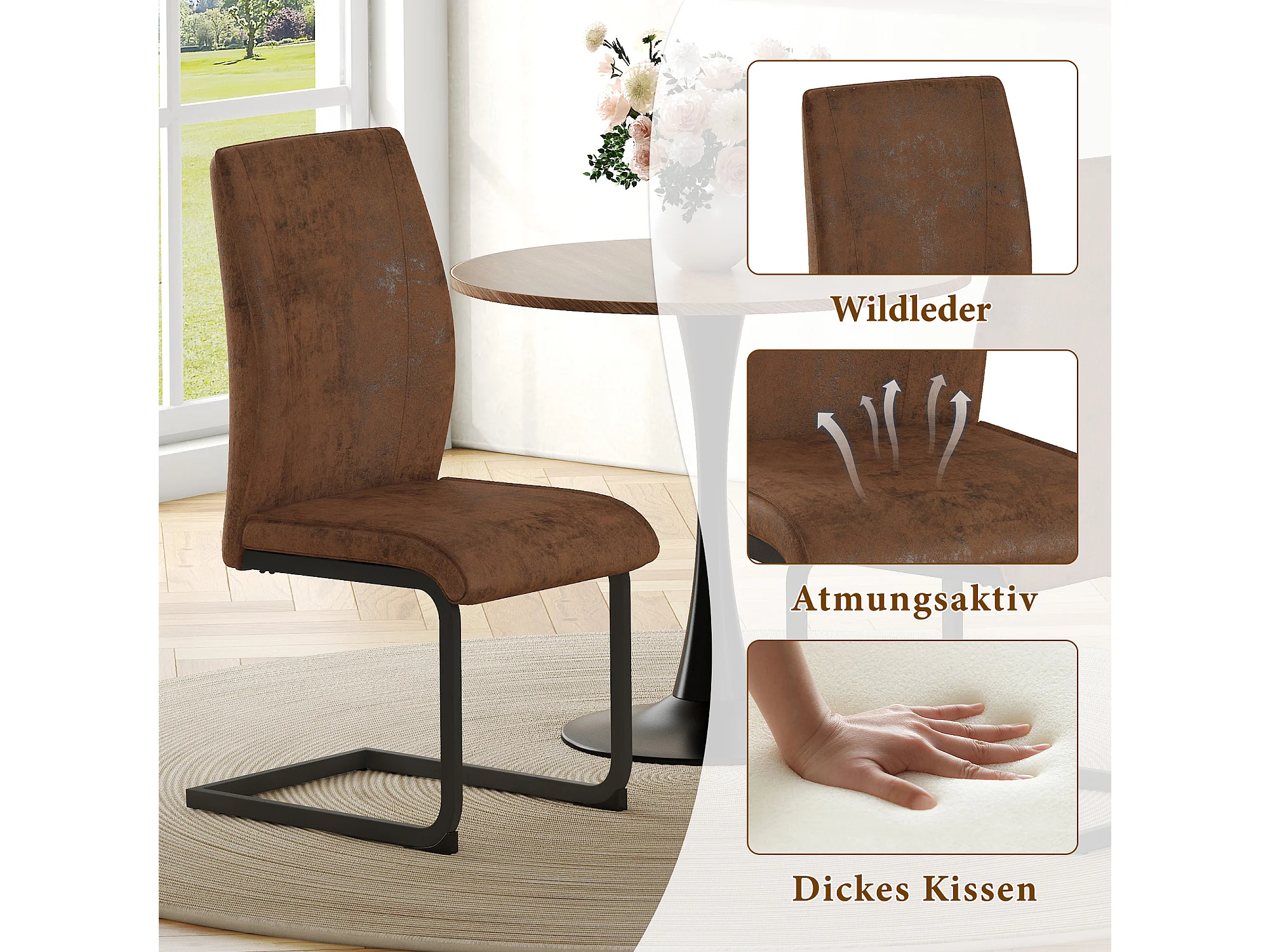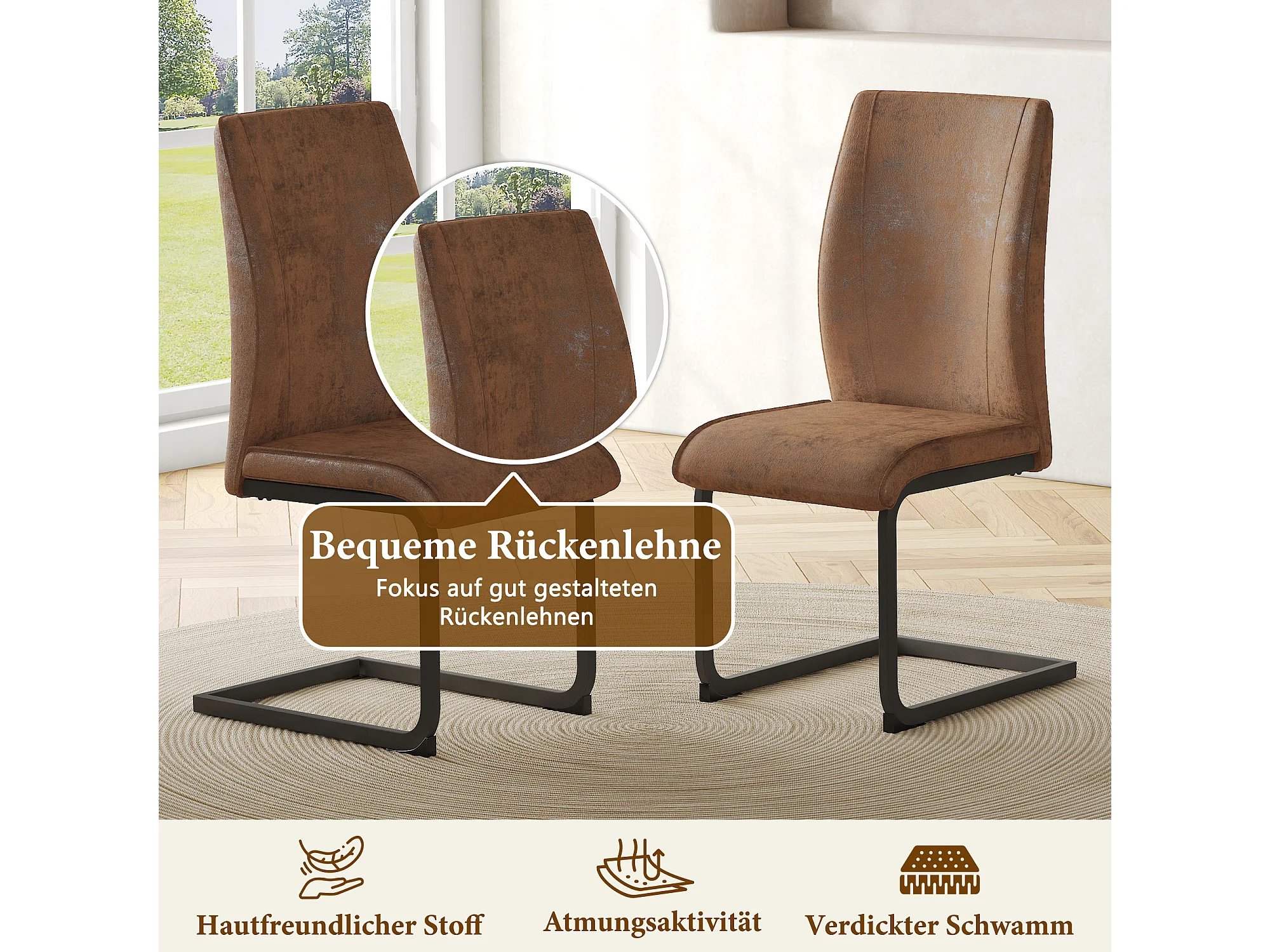 Juego de 2 sillas de comedor, PU marrón, con asientos acolchados de doble capa - para comedores y salas de estar