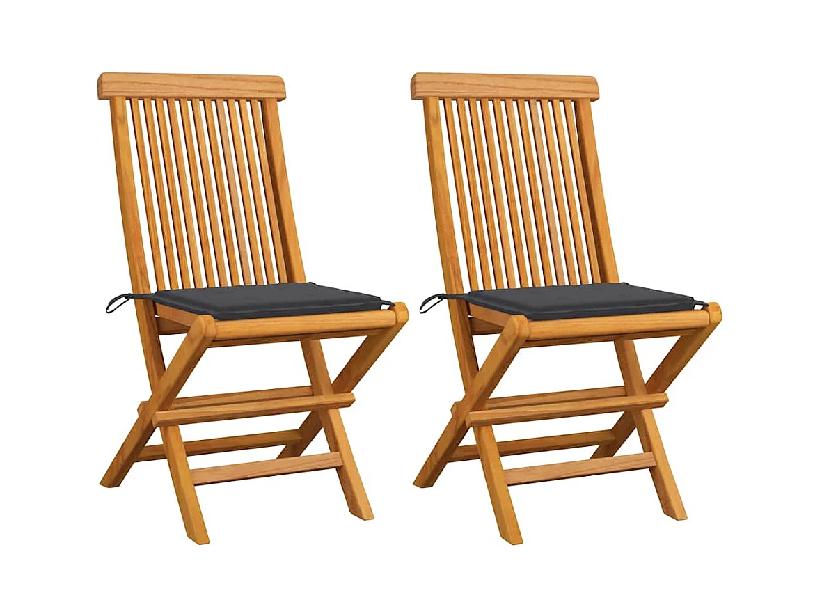 Juego de 2 sillas y cojines de jardín color antracita Madera de teca