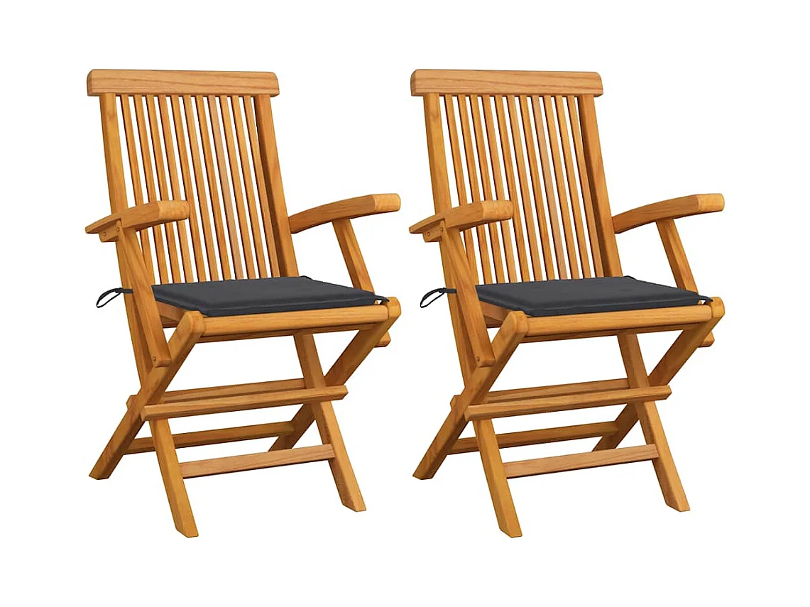 Juego de 2 sillas y cojines de jardín color antracita Madera de teca