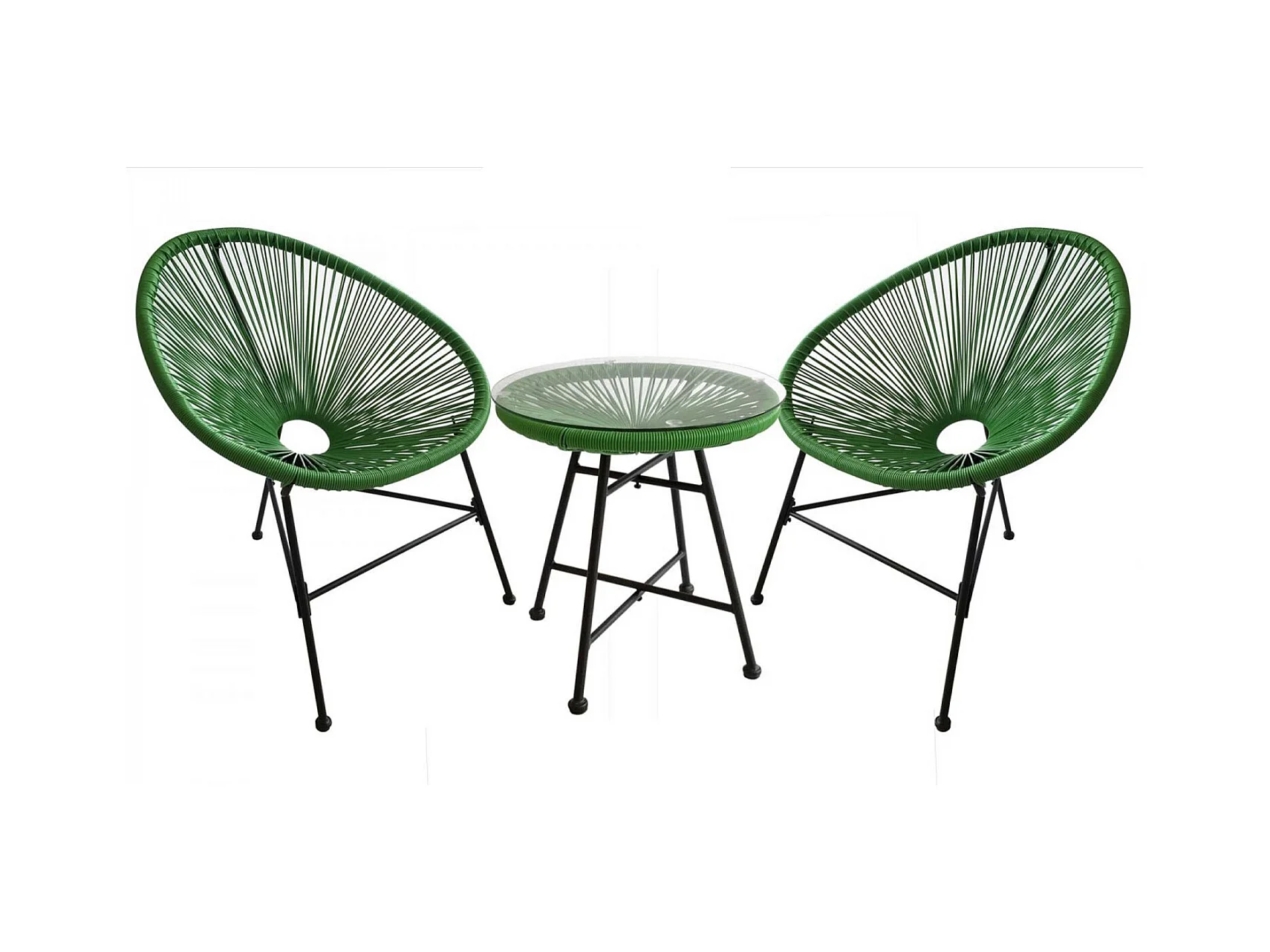 Juego de 2 sillones huevo + mesa de centro verde ACAPULCO