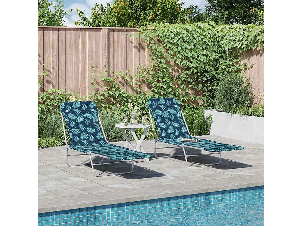 Juego de 2 sillones plegables de tela de acero con estampado de hojas