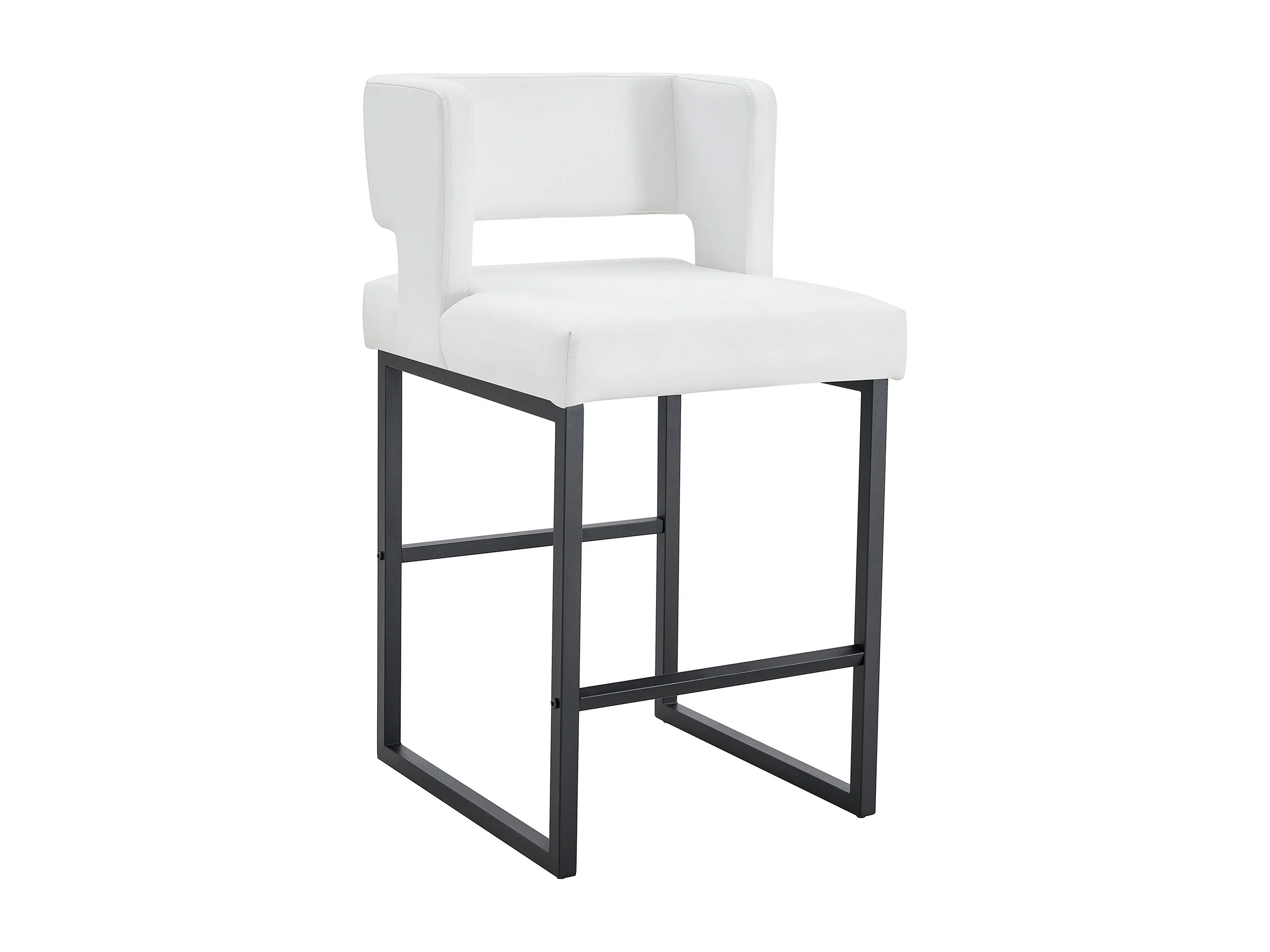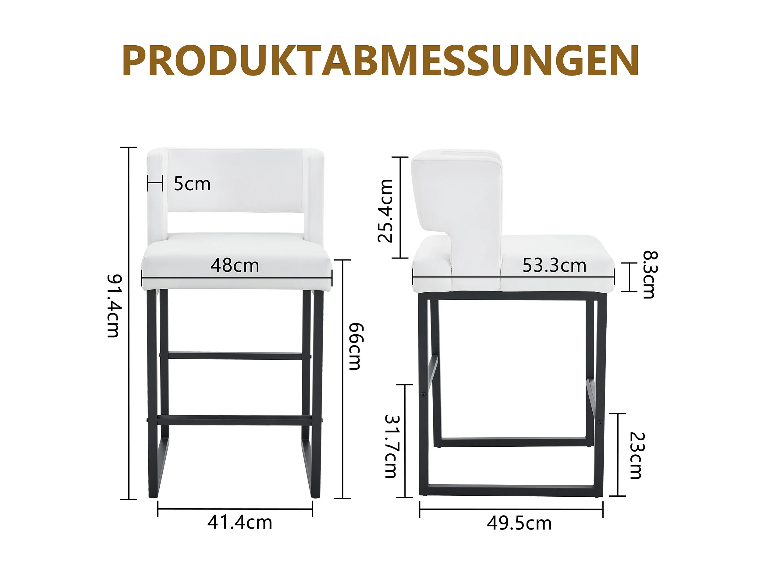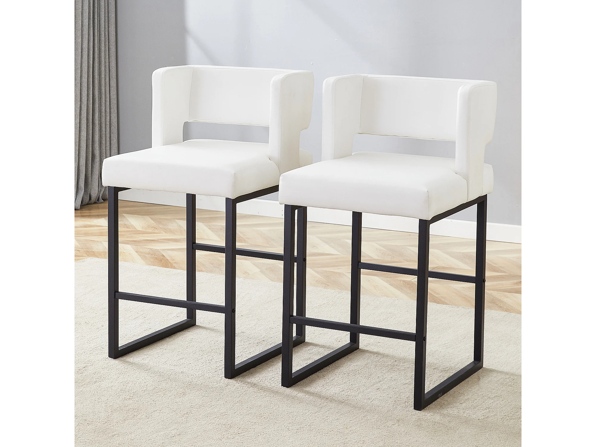 Juego de 2 taburetes de bar de PU blanco con patas de metal negro - Diseño nórdico