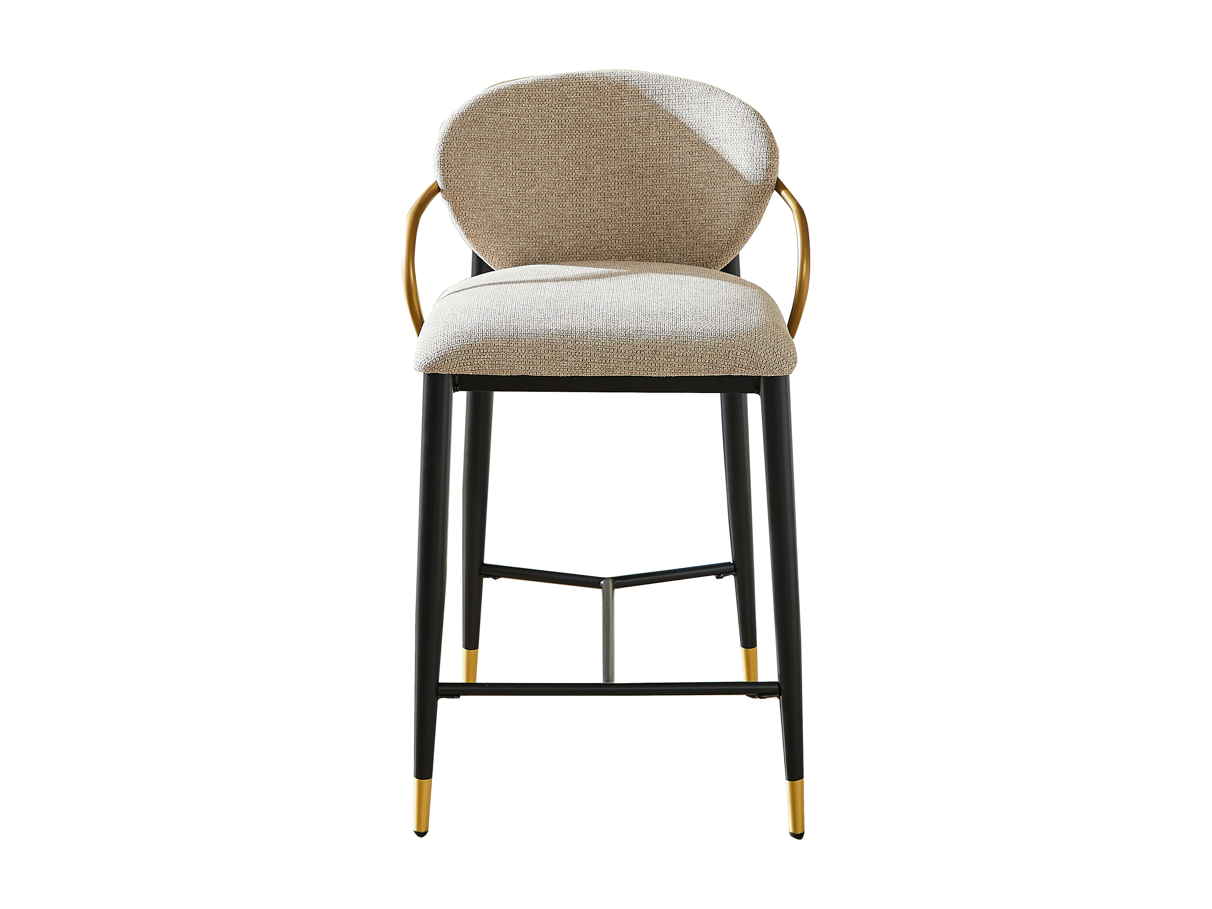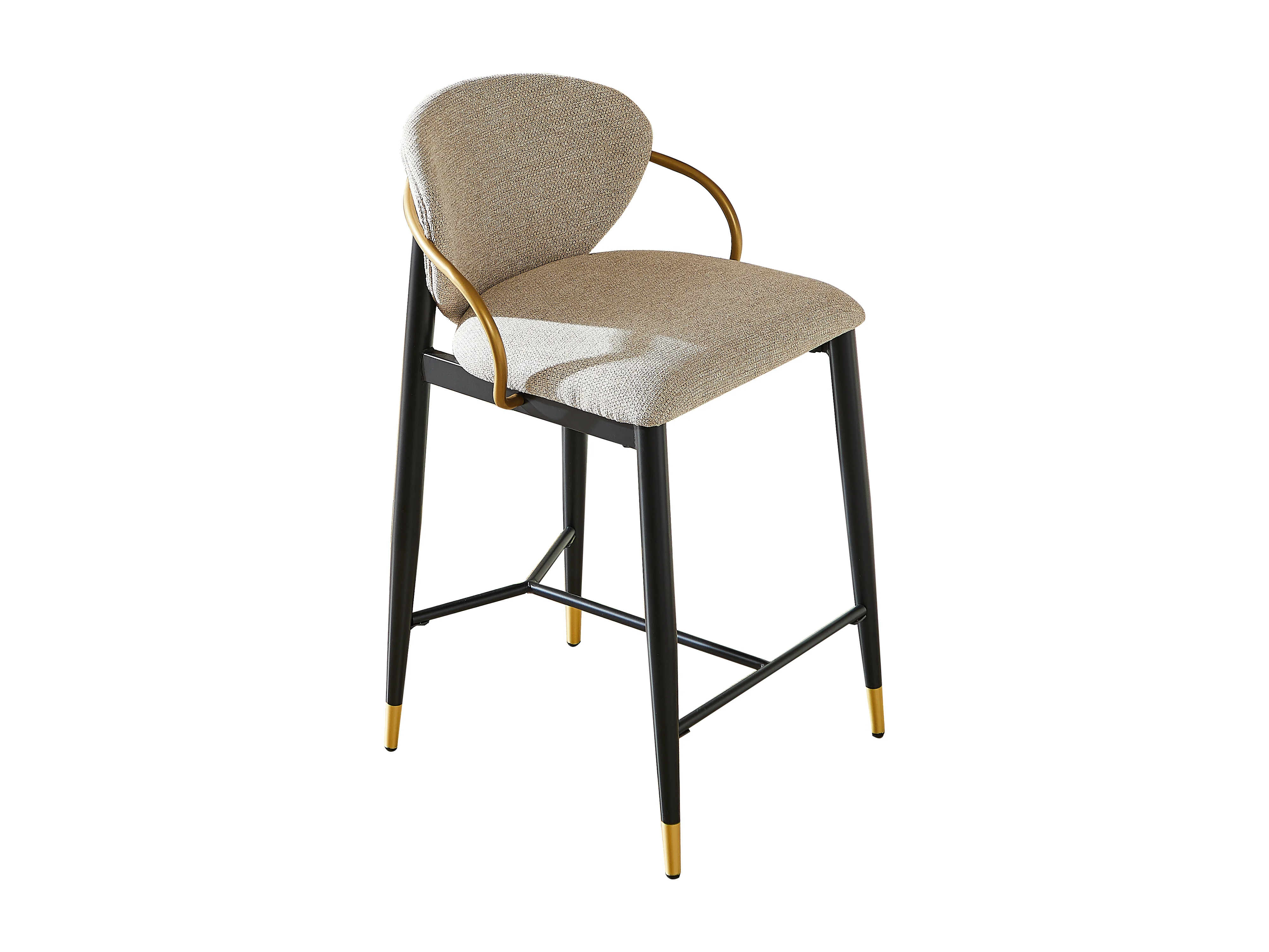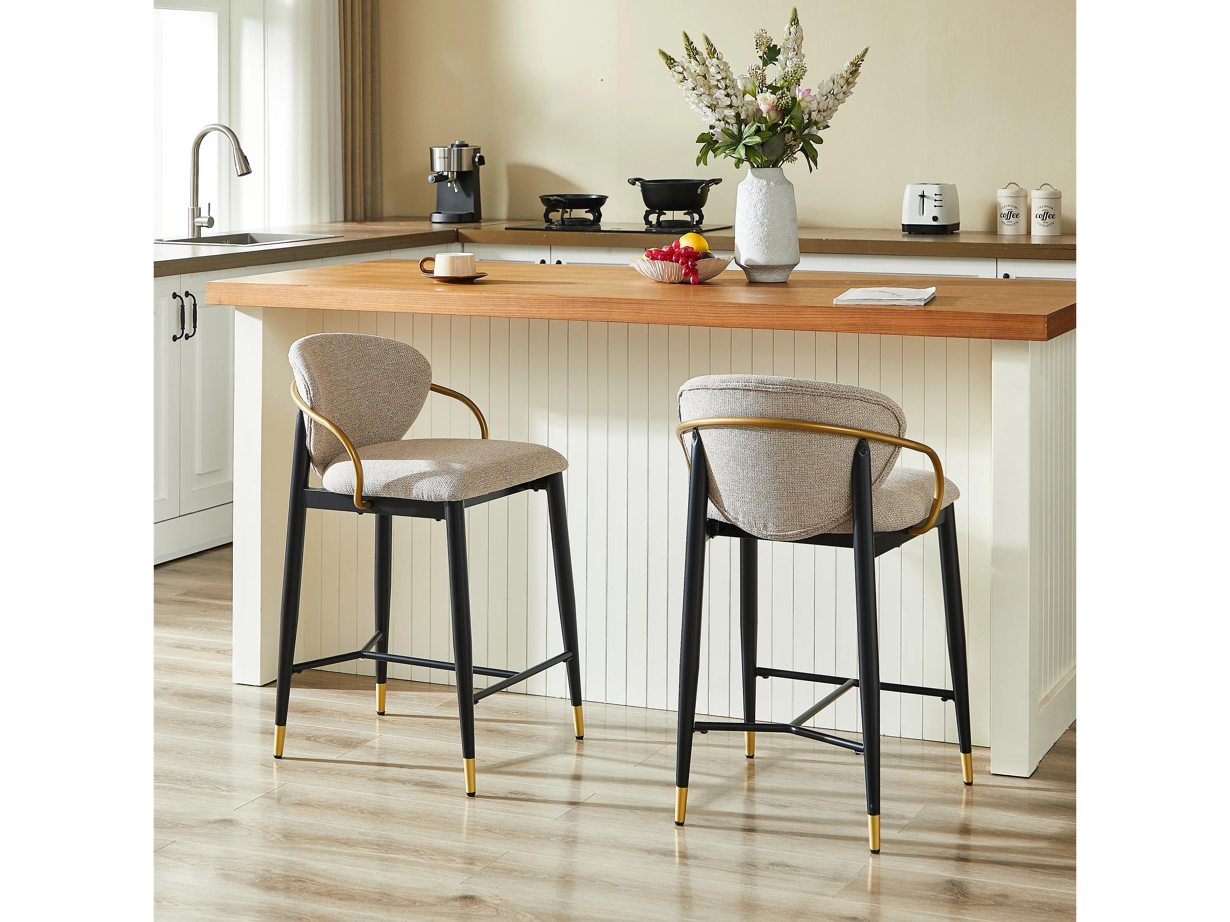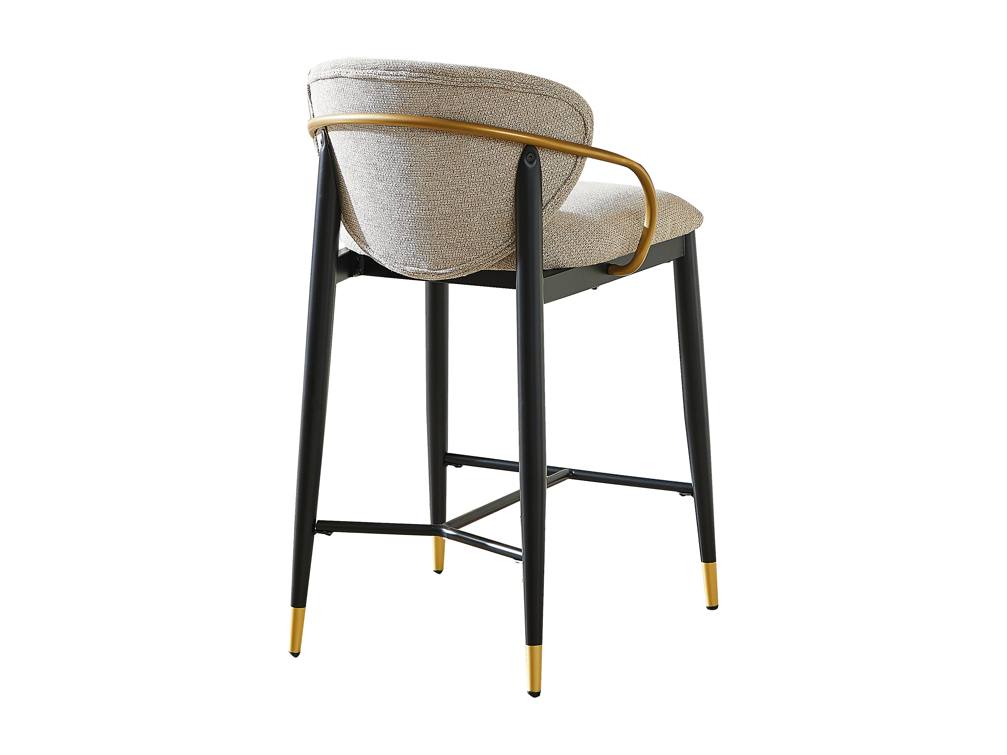 Juego de 2 taburetes de bar en tejido chenilla marrón claro - Patas de metal negro y dorado