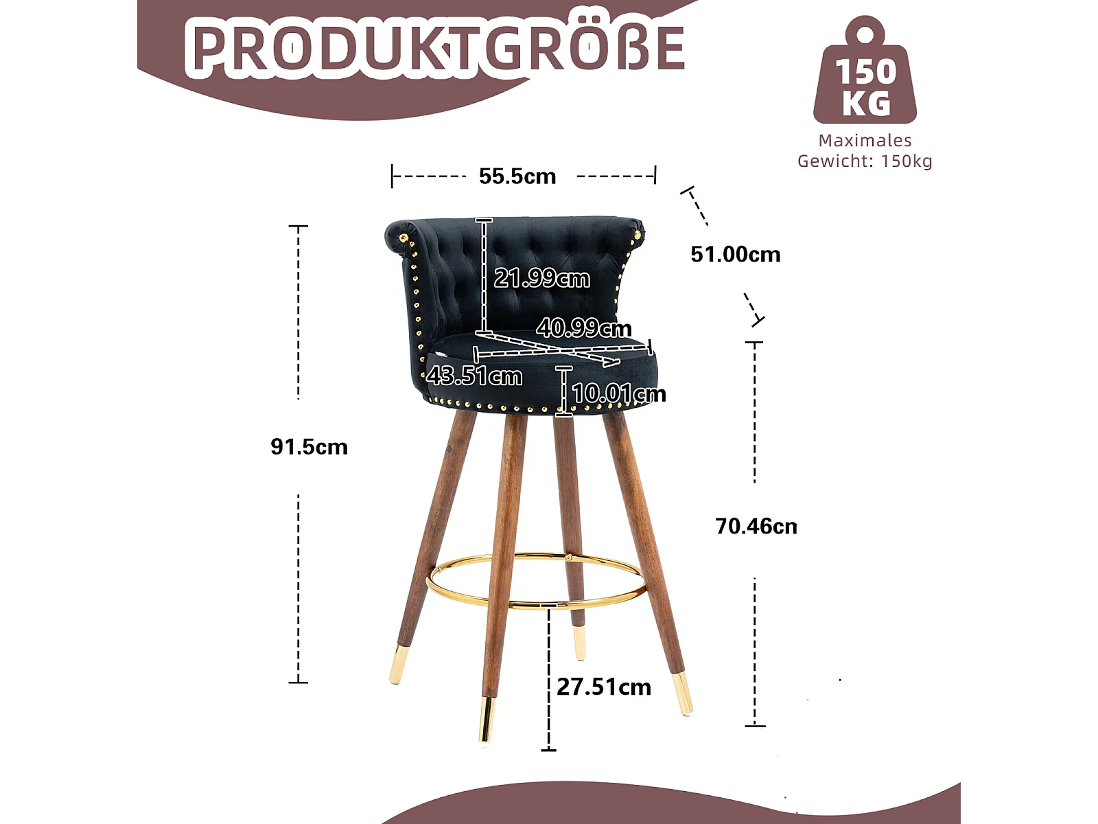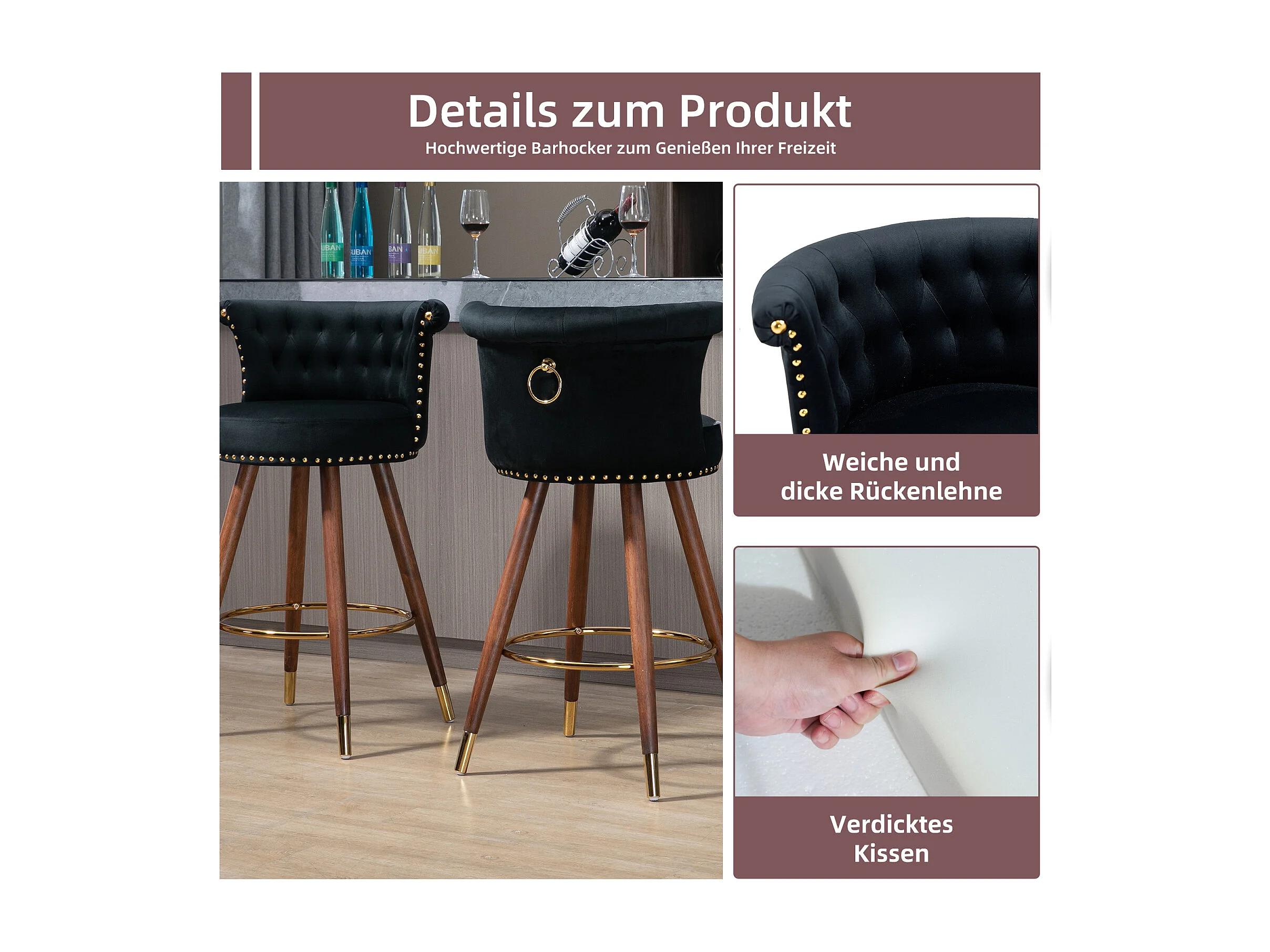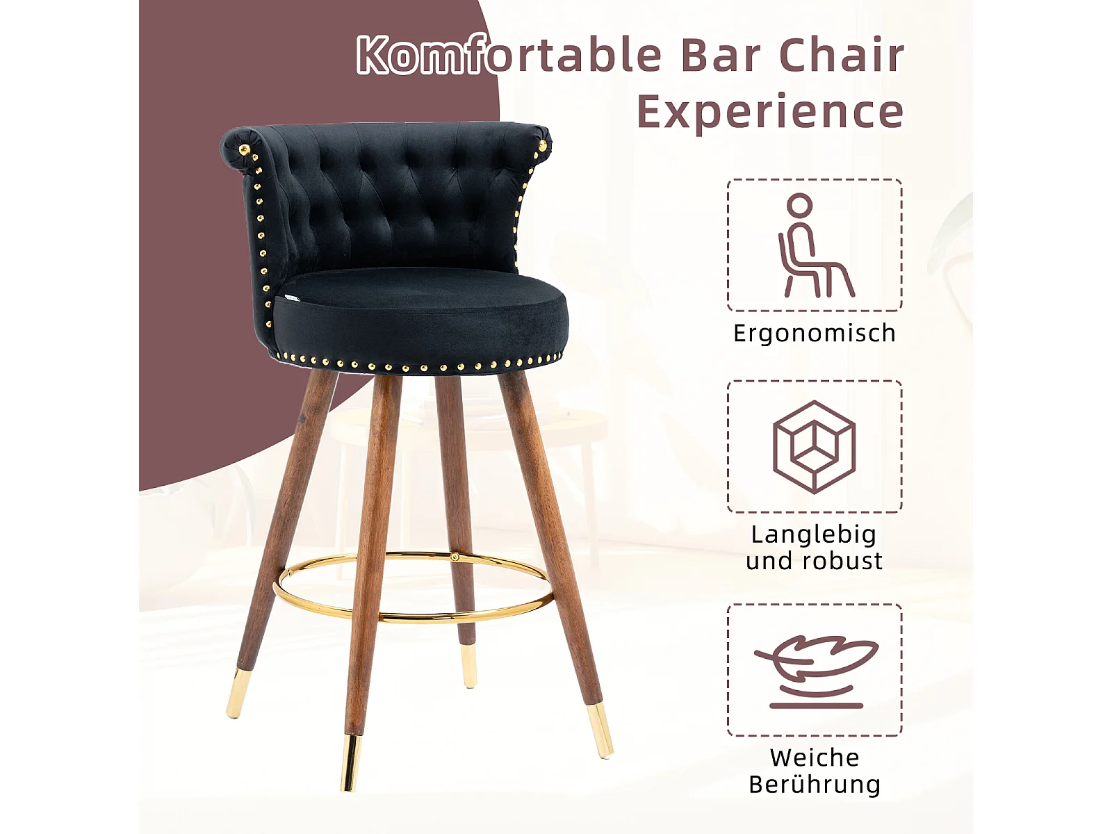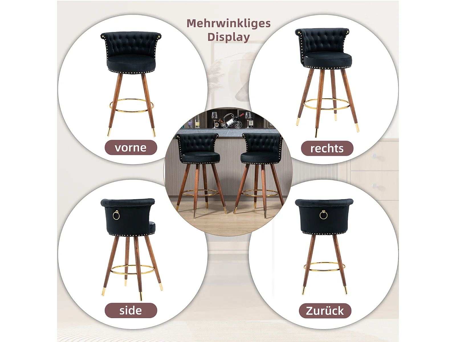 Juego de 2 taburetes de bar giratorios 55,5x51x95,5cm, con respaldo y reposapiés, altura fija 360 grados, color negro