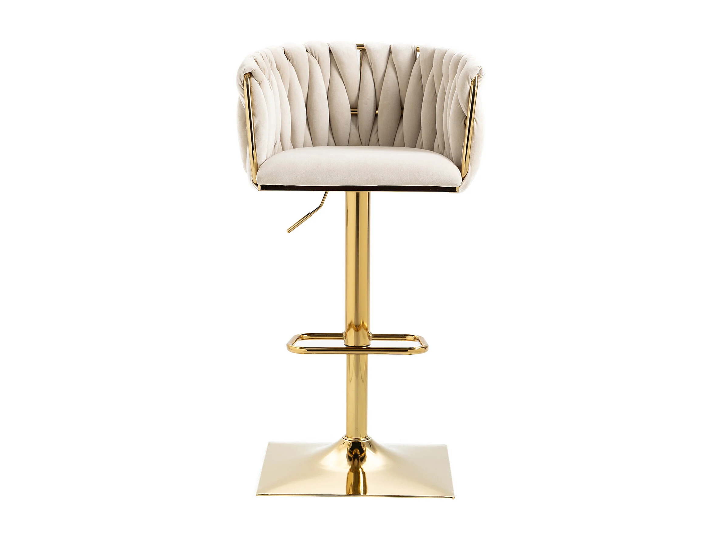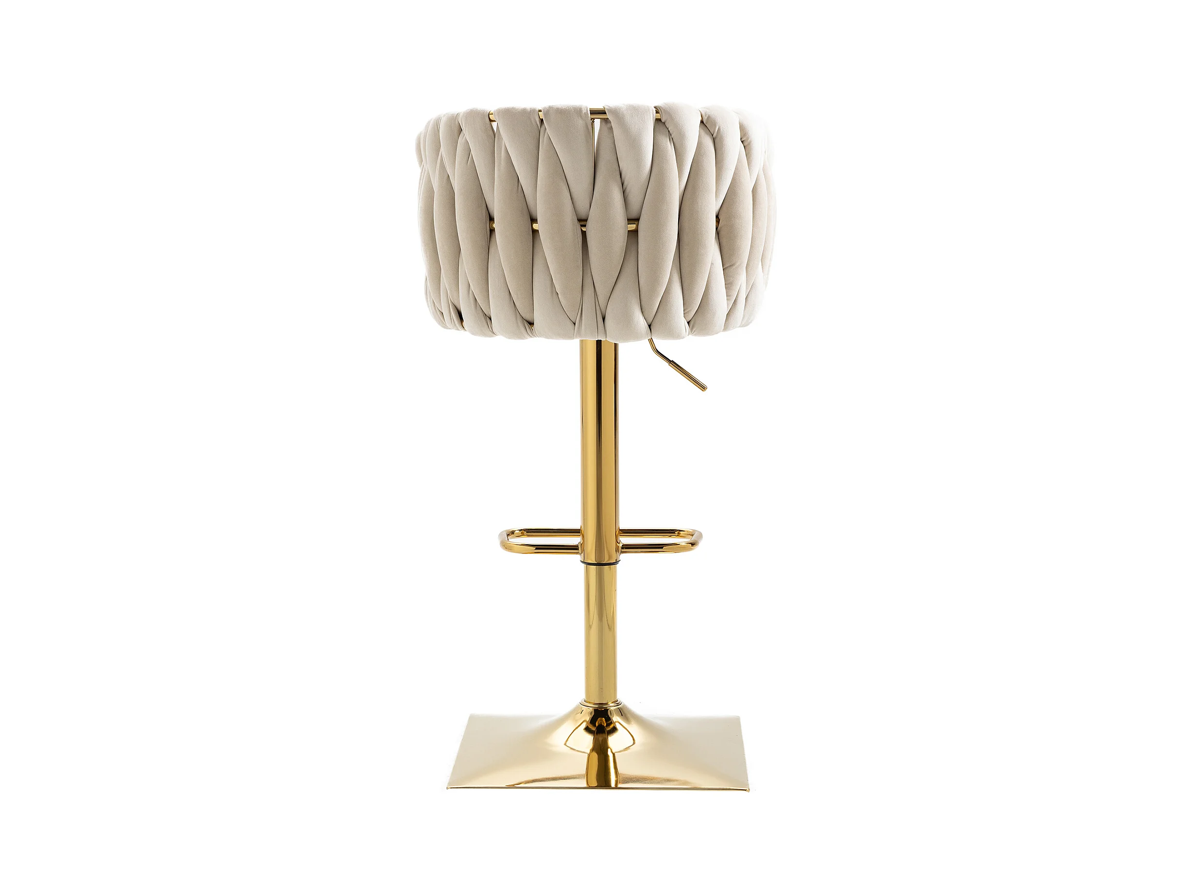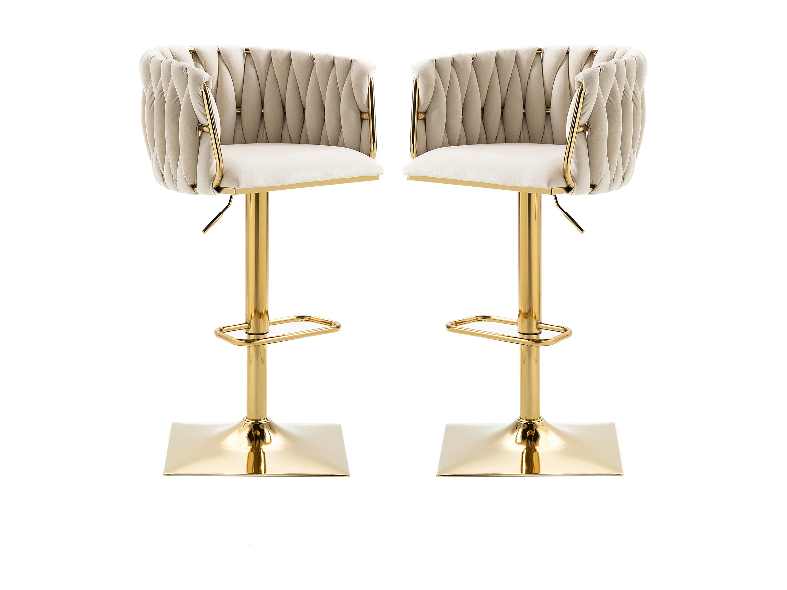 Juego de 2 taburetes de bar, giratorios, regulables en altura con respaldo y reposapiés, base de metal, 53x51x83-105cm, beige