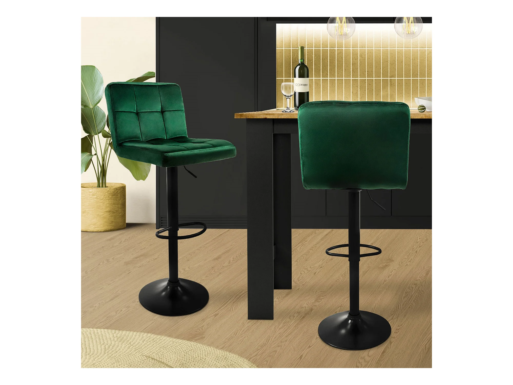 Pack de 2 taburetes regulables modelo Monet tapizado en tela velvet verde, 54cm(ancho ) 88