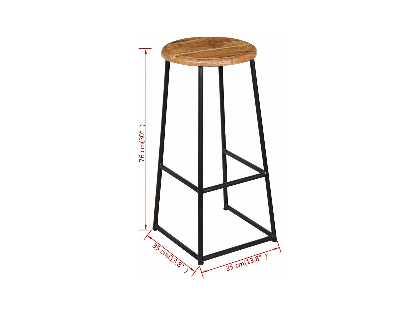 Juego de dos taburetes de bar de diseño con asiento de madera maciza de acacia 1202053