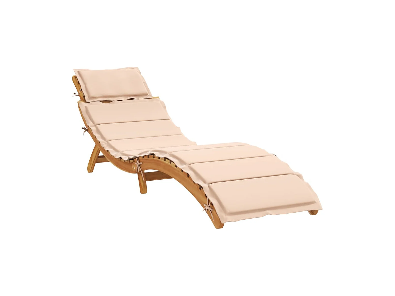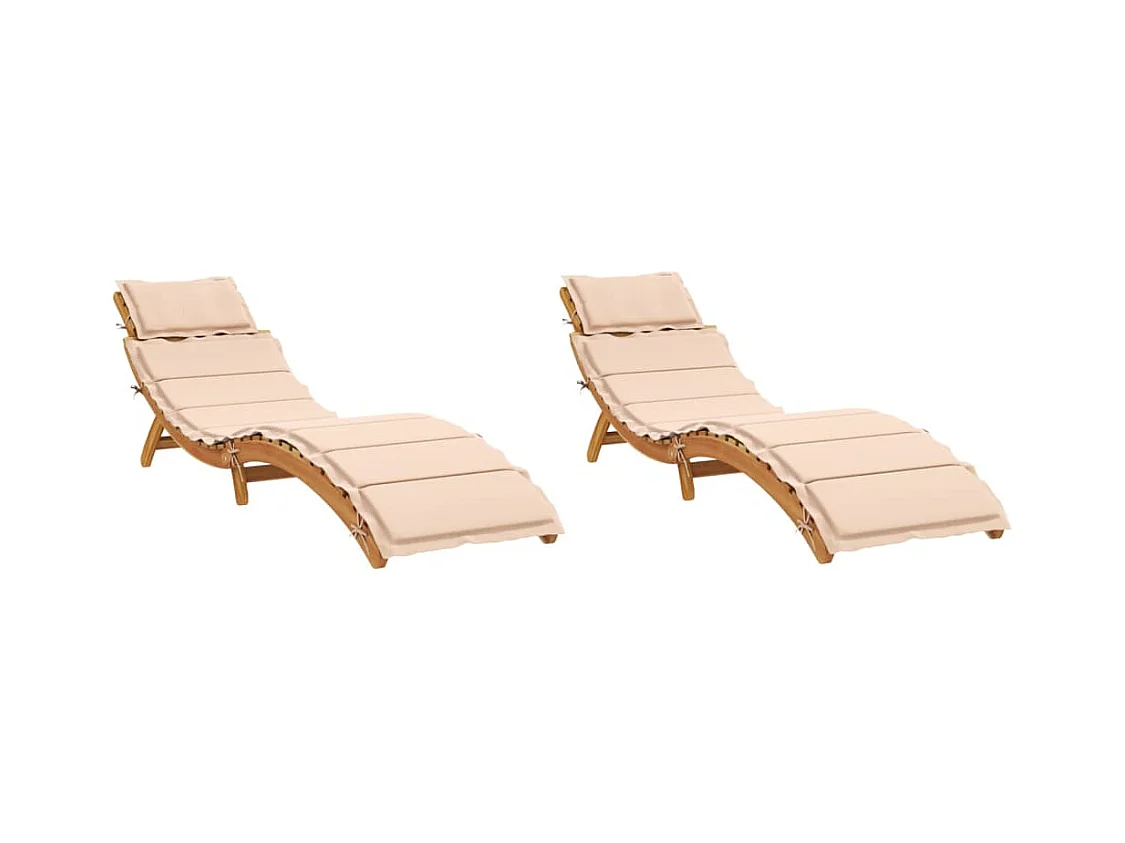 Juego de 2 tumbonas con cojines de madera maciza de acacia beige