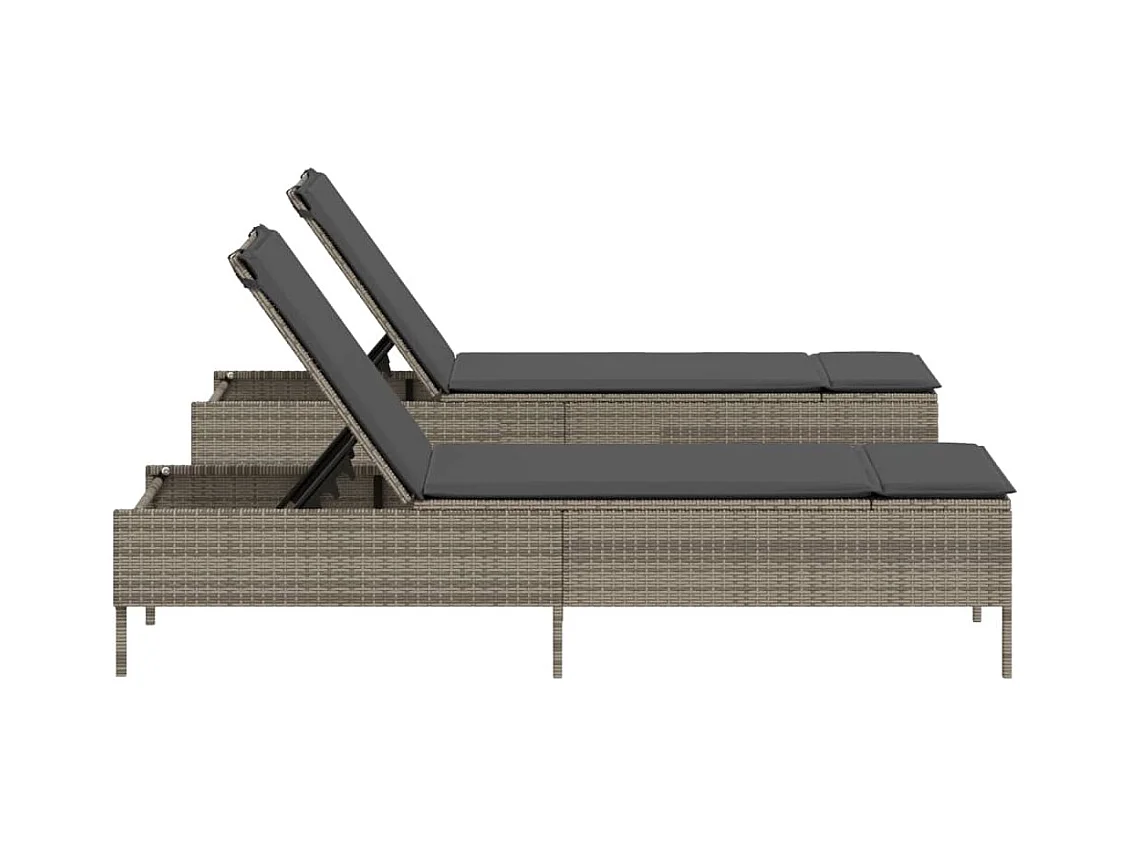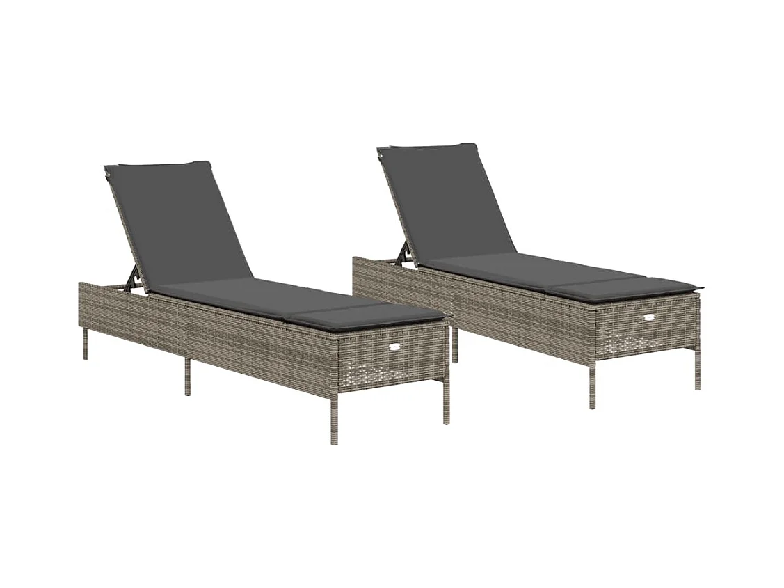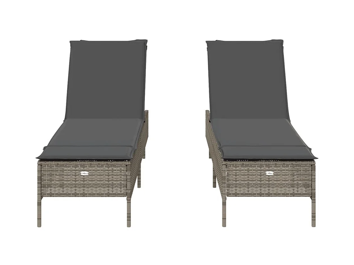 Juego de 2 tumbonas con cojines de resina tejida gris.