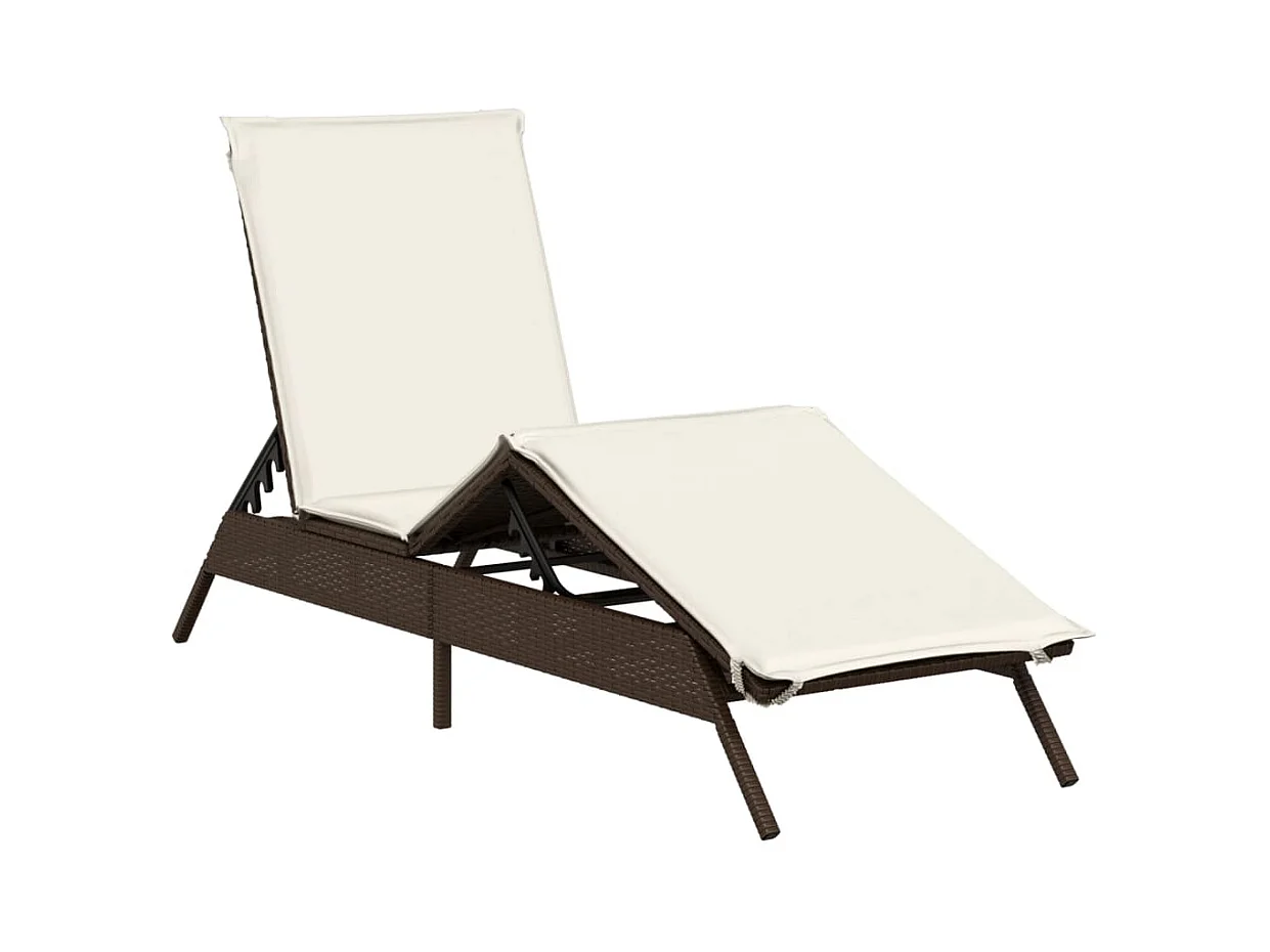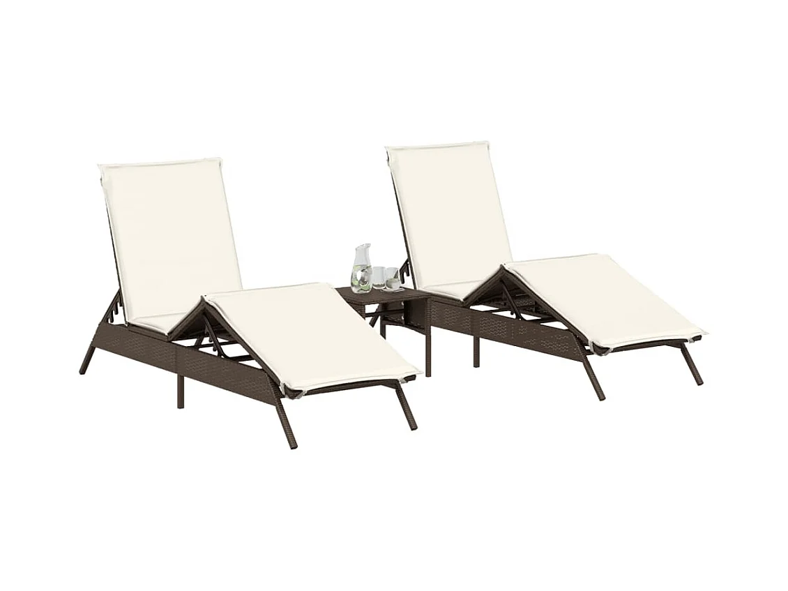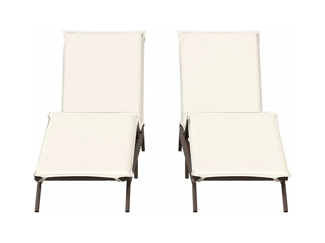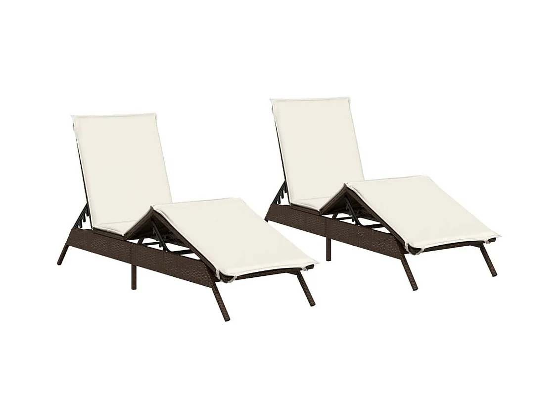 Juego de 2 tumbonas con cojines de resina tejida marrón.