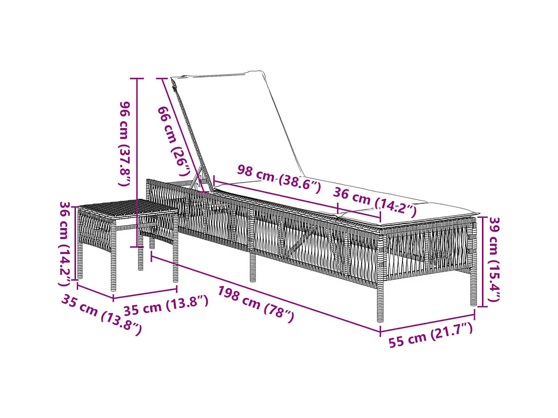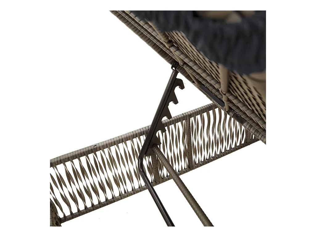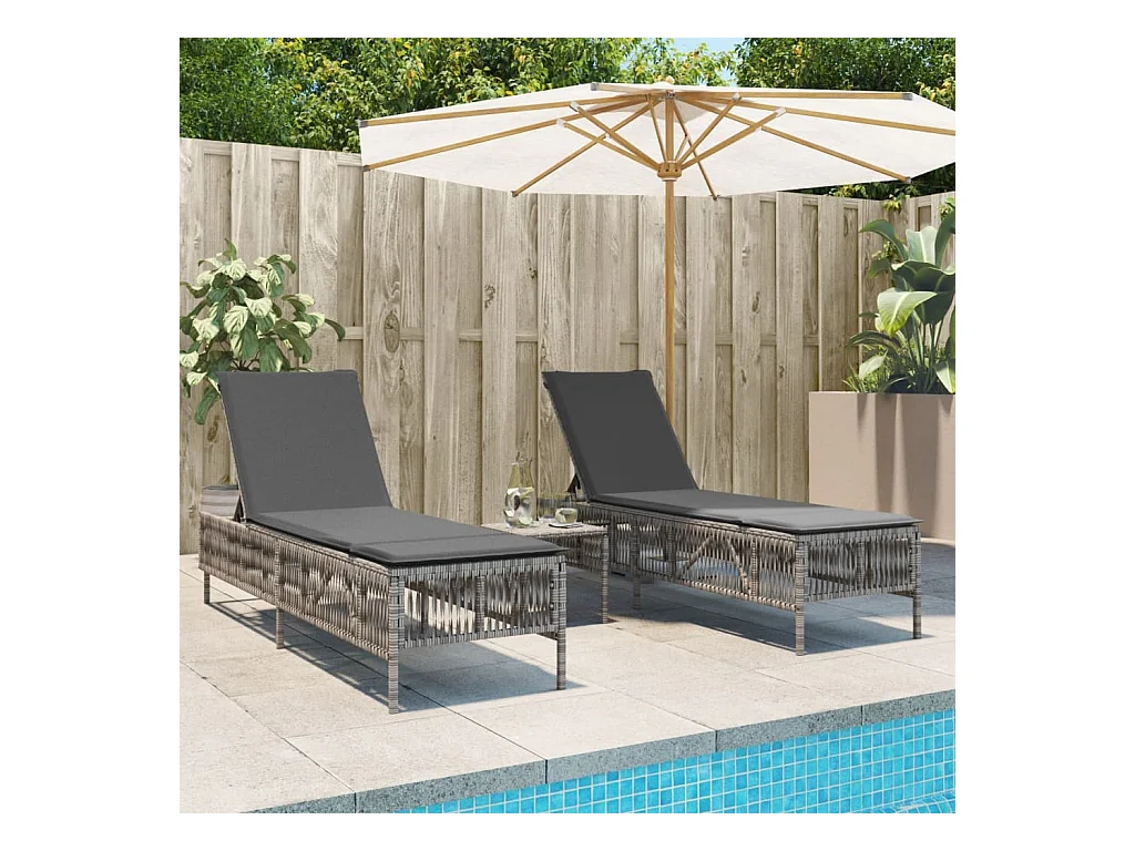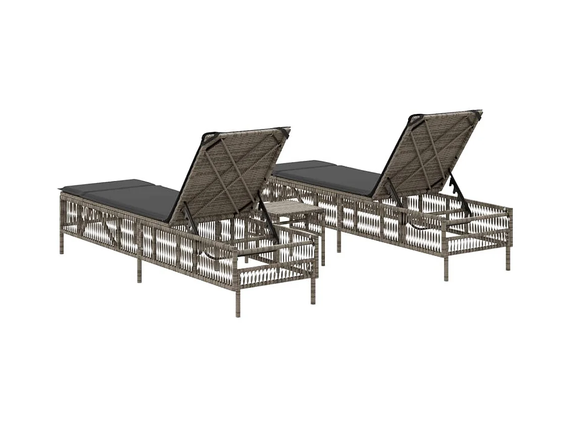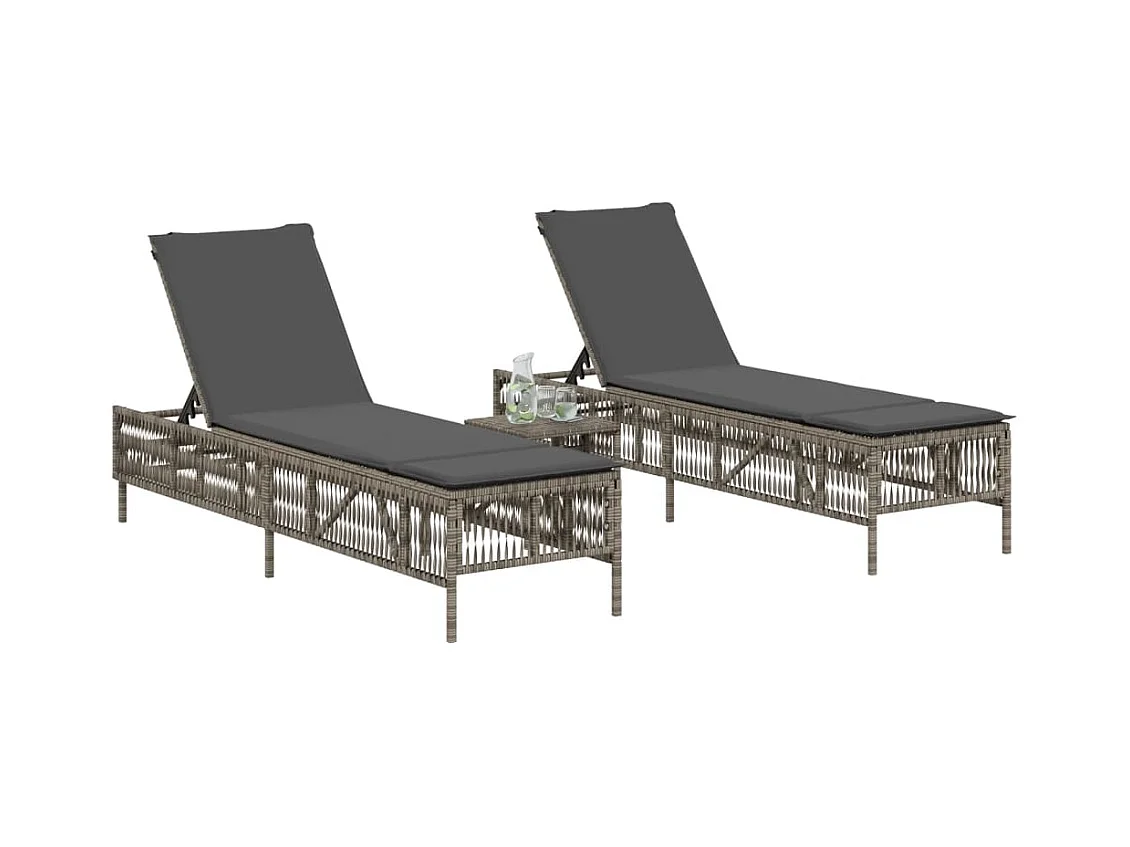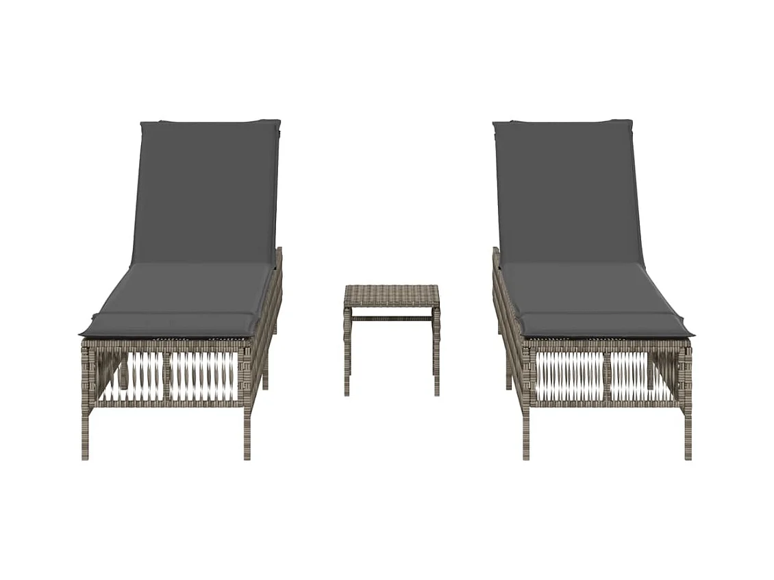 Juego de 2 tumbonas con mesa de resina trenzada gris.