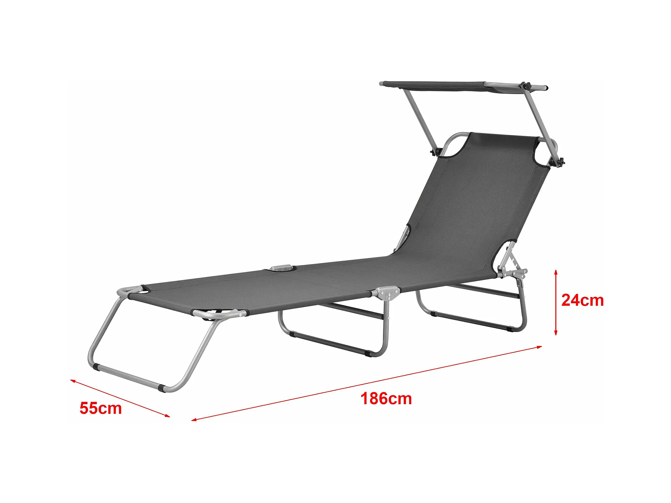 Juego de dos tumbonas plegables con techo de acero parasol relax 190 cm gris oscuro 03_0004512
