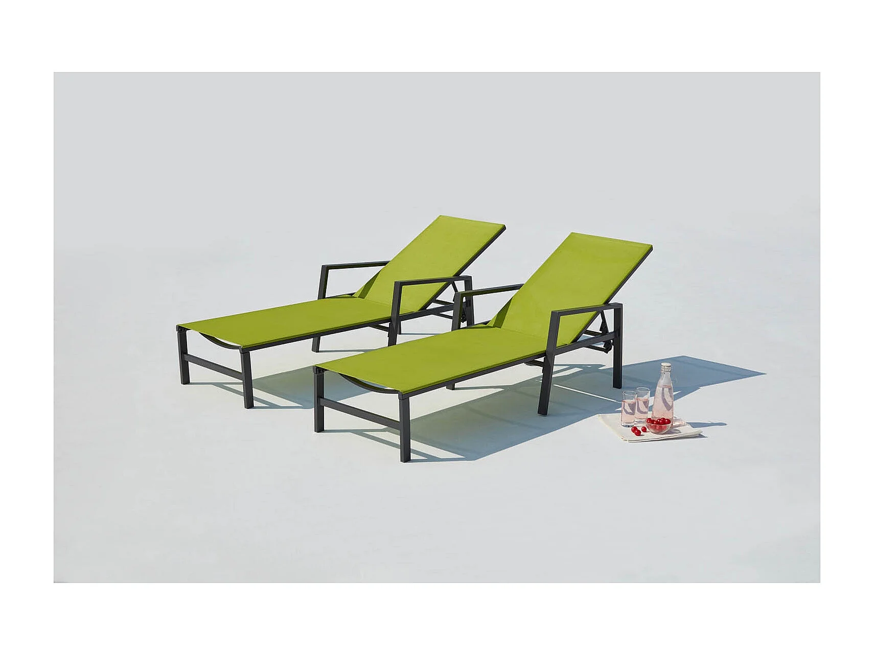 Juego de 2 tumbonas gris oscuro y verde BARI