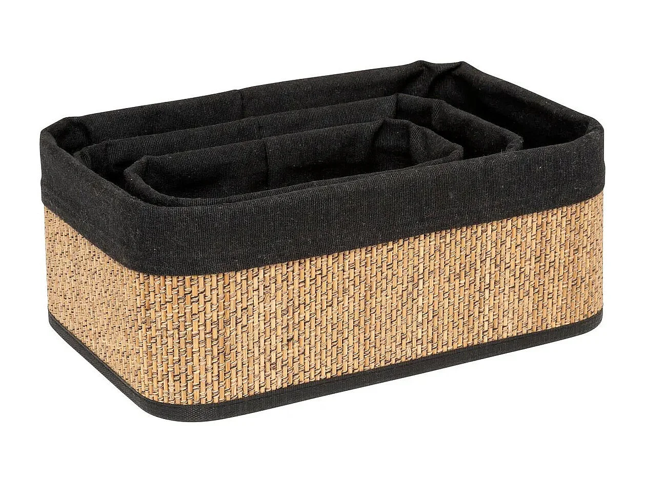Juego de 3 cestas de bambú y tela negra