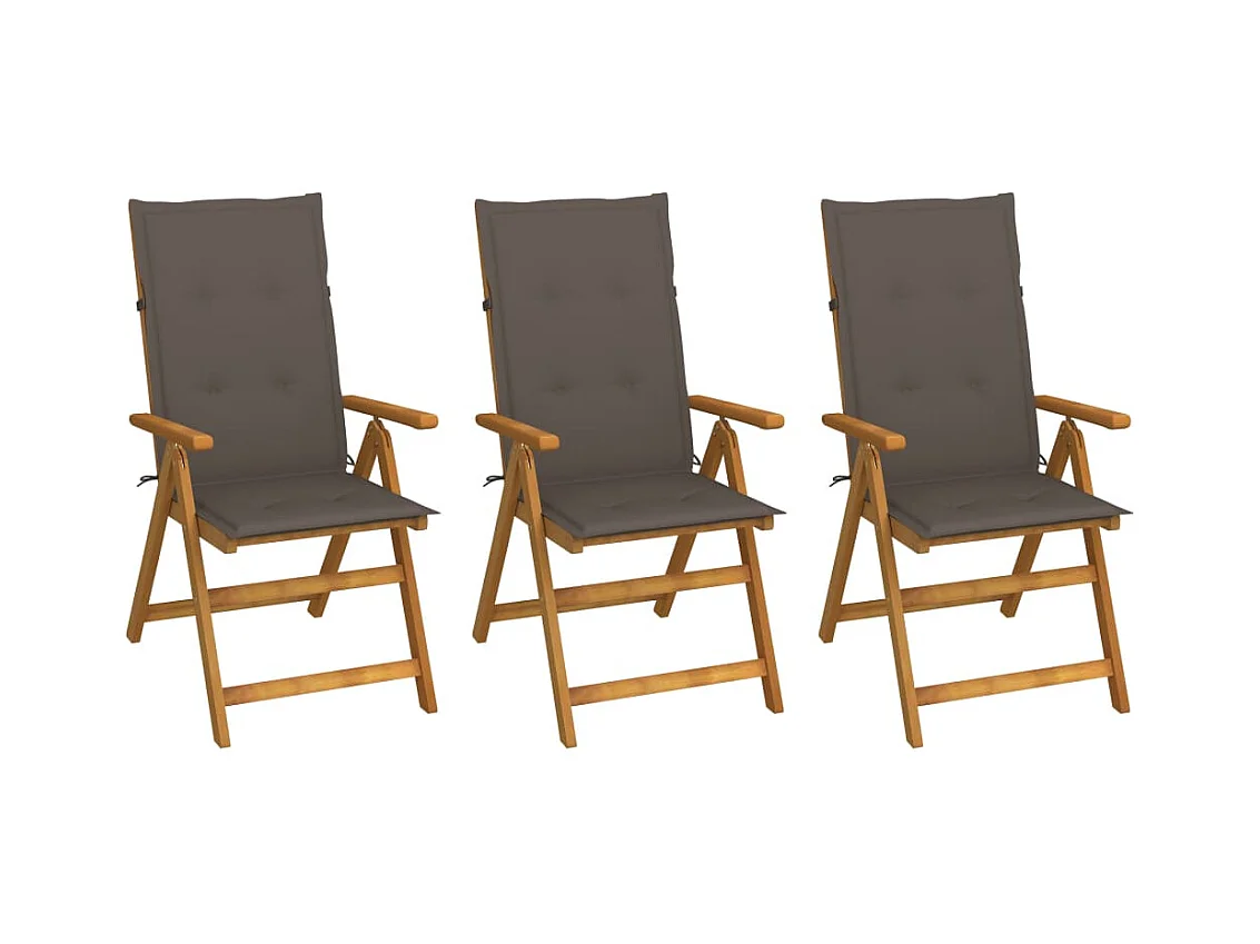 Juego de 3 sillas de jardín plegables con cojines de madera de acacia