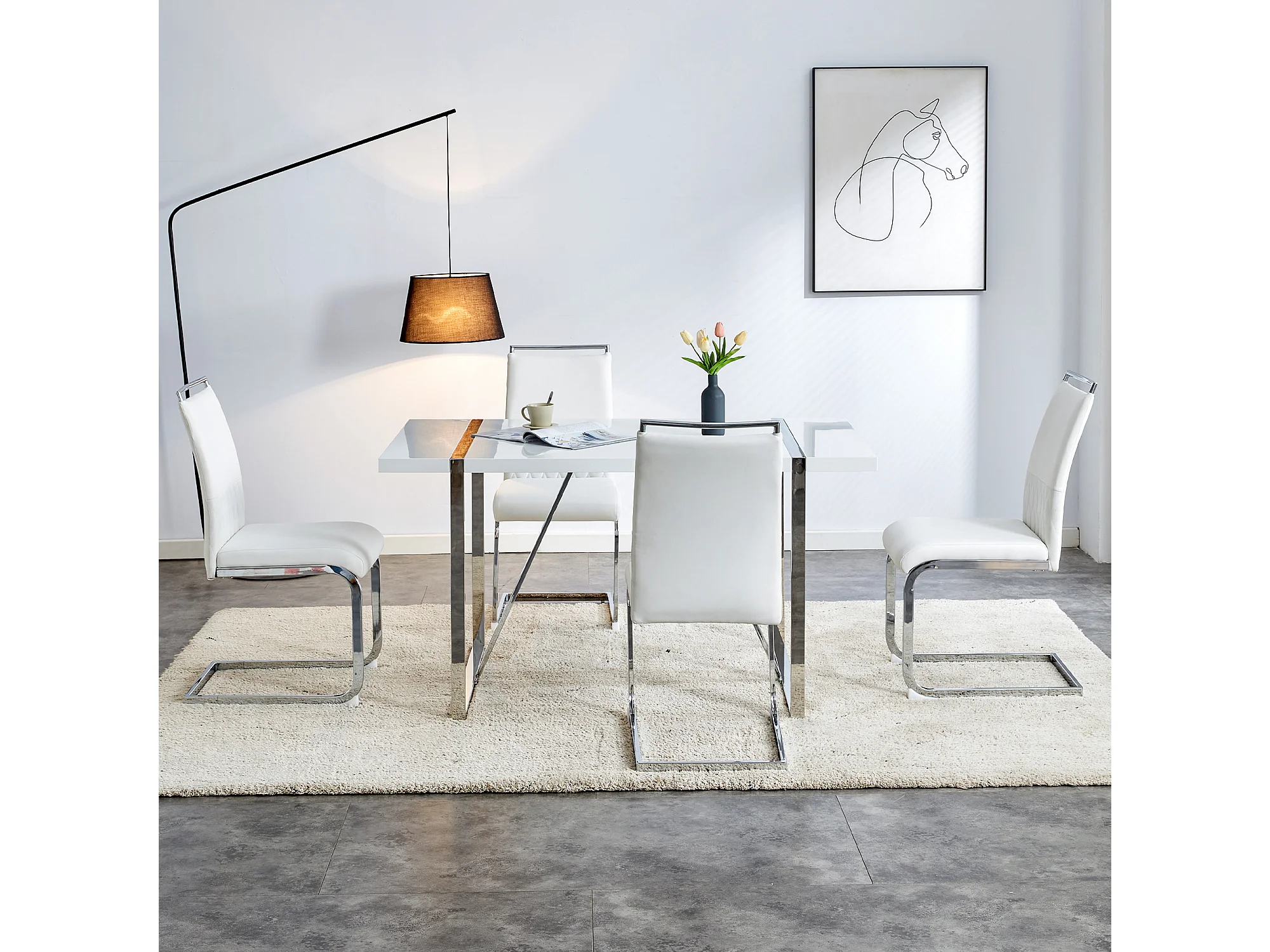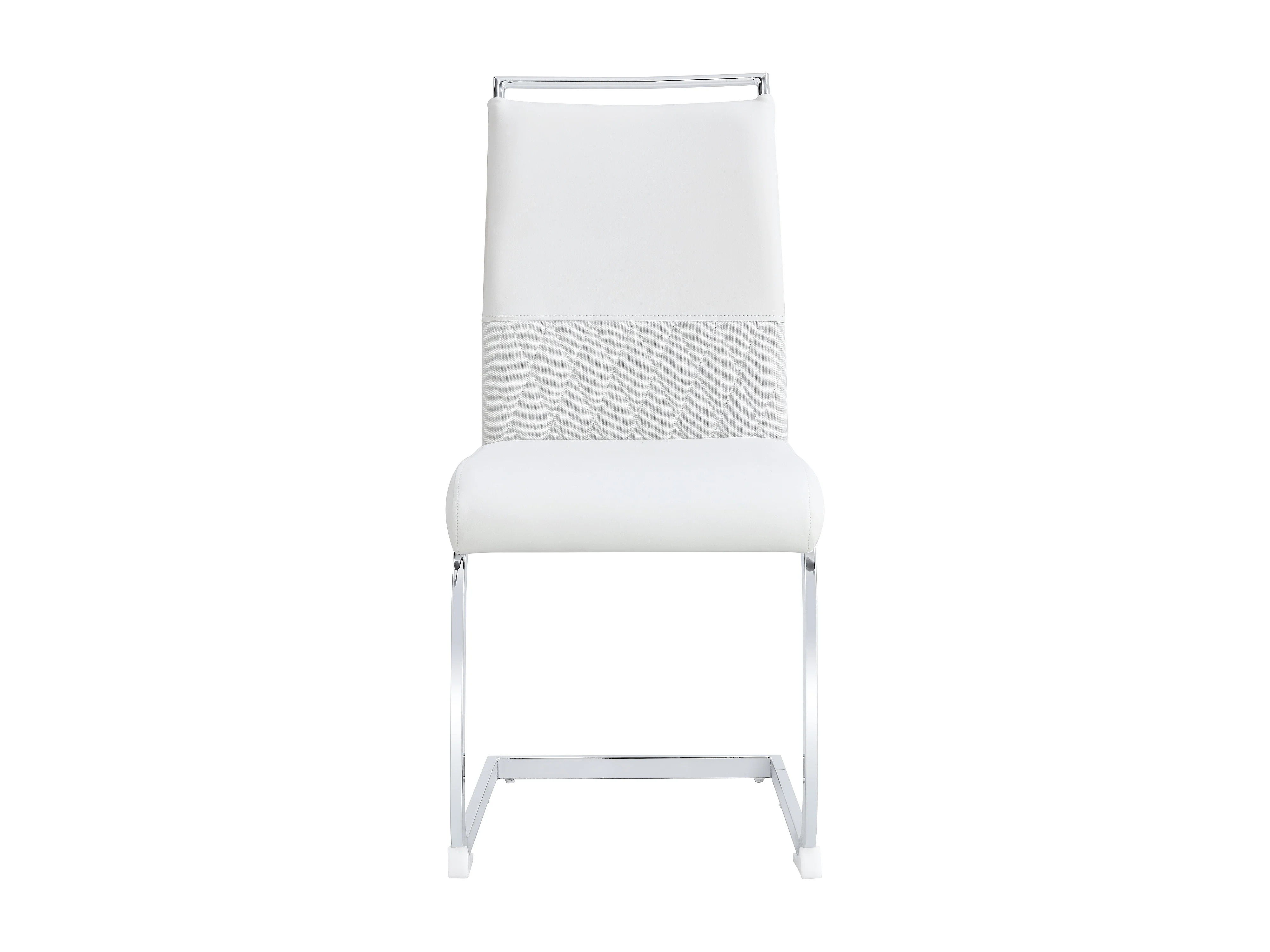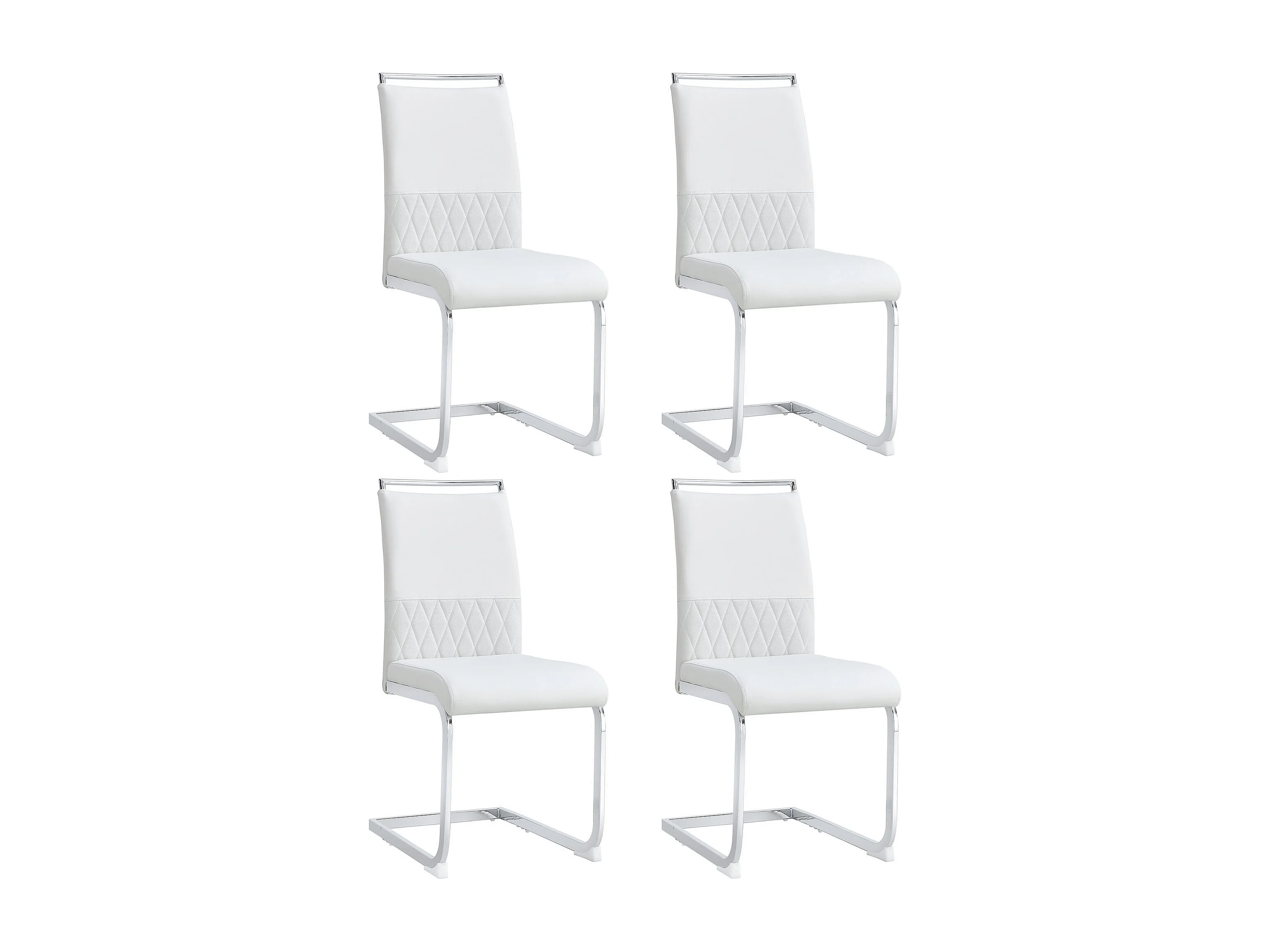 Juego de 4 sillas de comedor blancas - respaldo a rayas y 4 reposapiés - PU y lino
