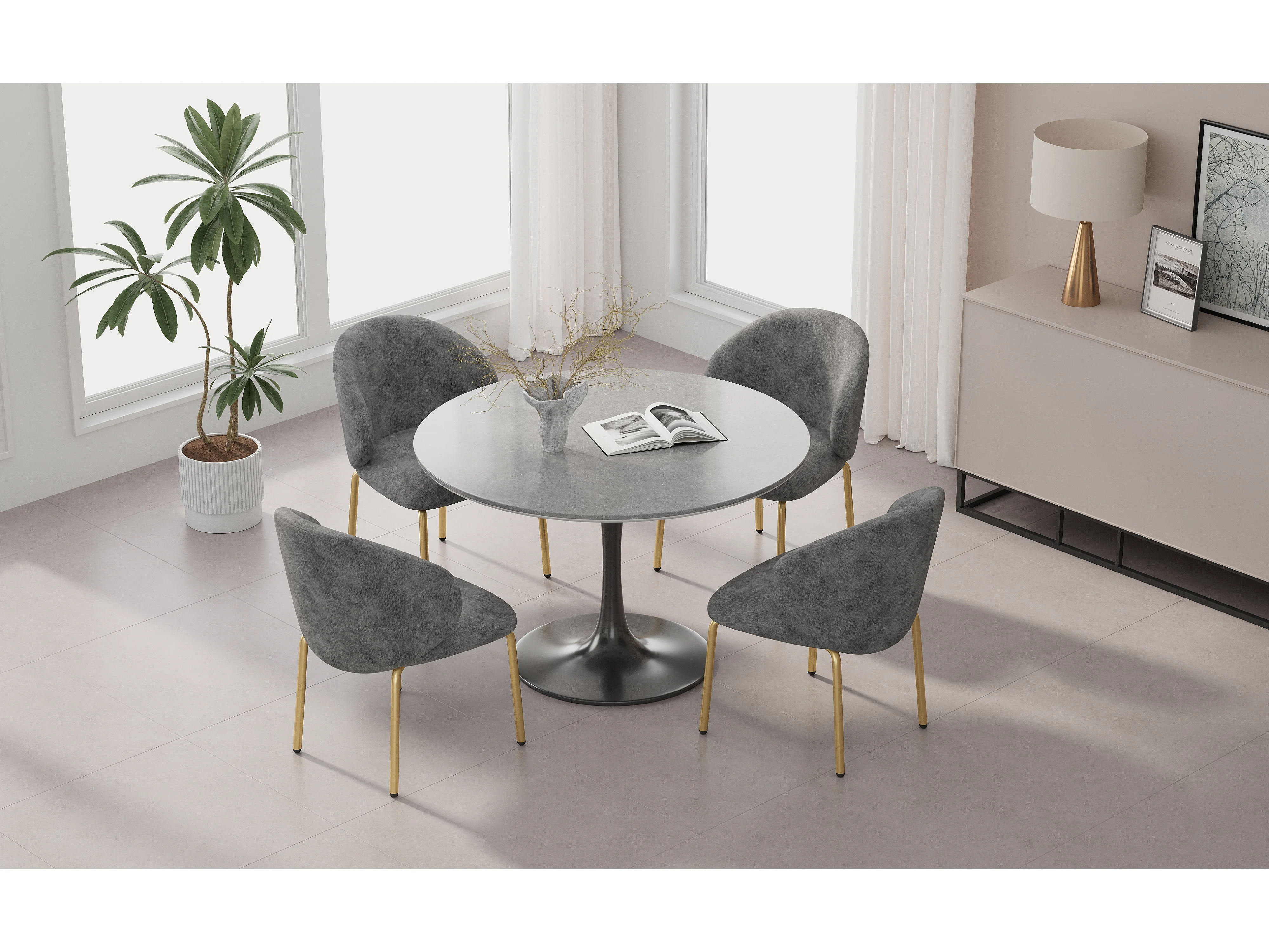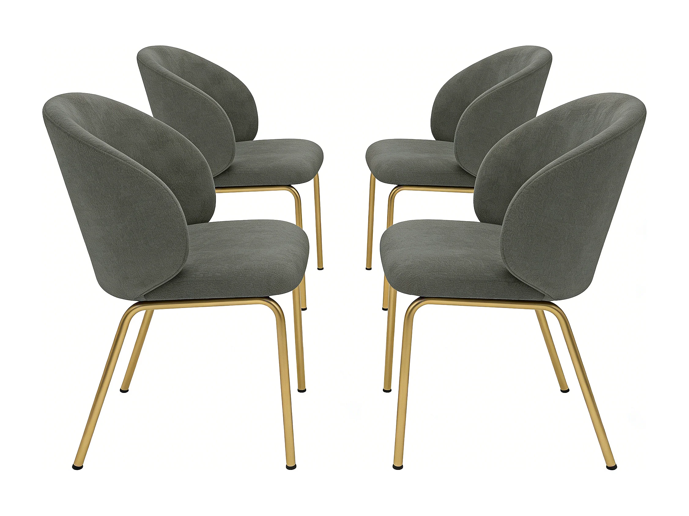 Juego de 4 sillas de comedor de chenilla gris - Patas de metal dorado