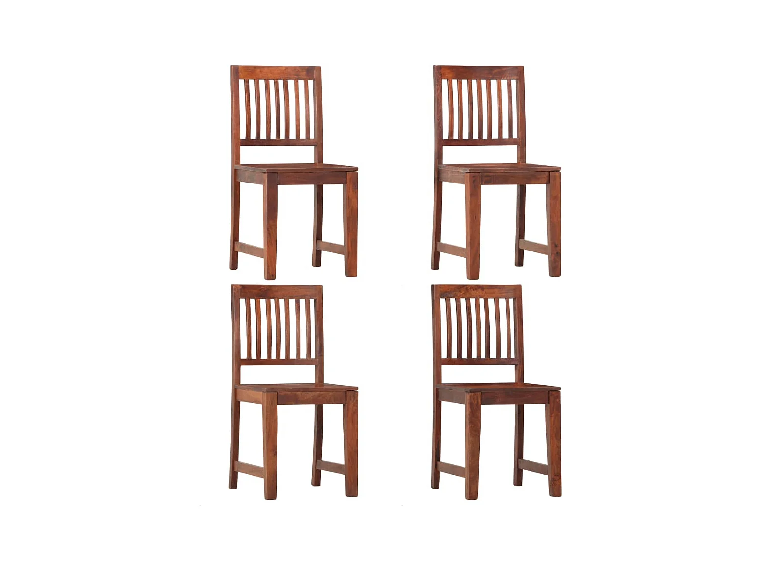 Juego de 4 sillas de comedor de madera de pino marrón oscuro