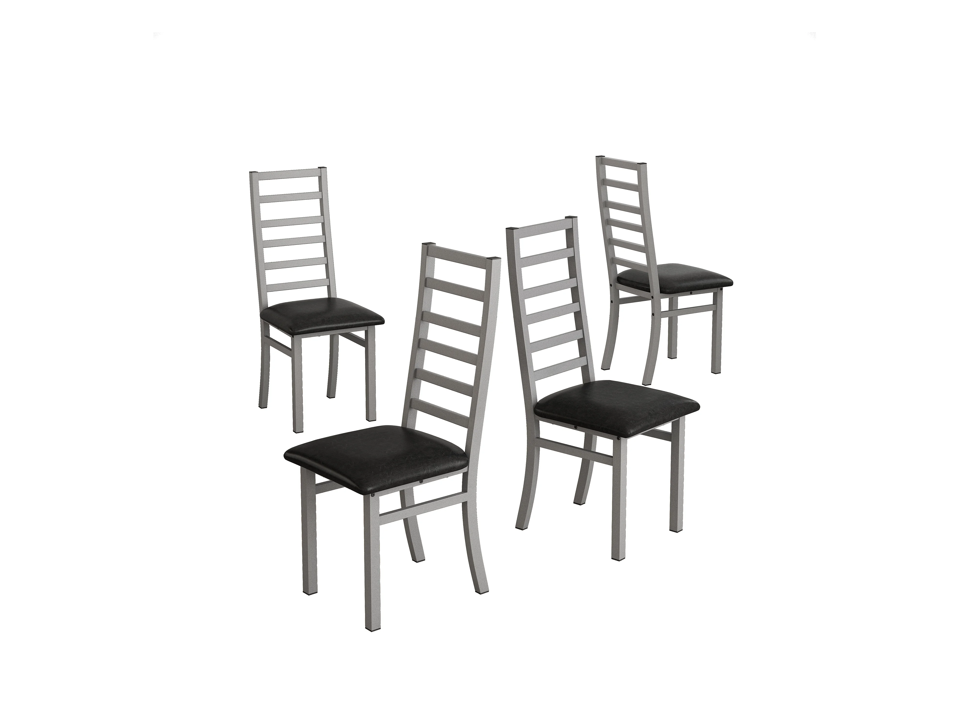 Juego de 4 sillas de comedor de metal y piel sintética con respaldo alto y sin reposabrazos, color gris