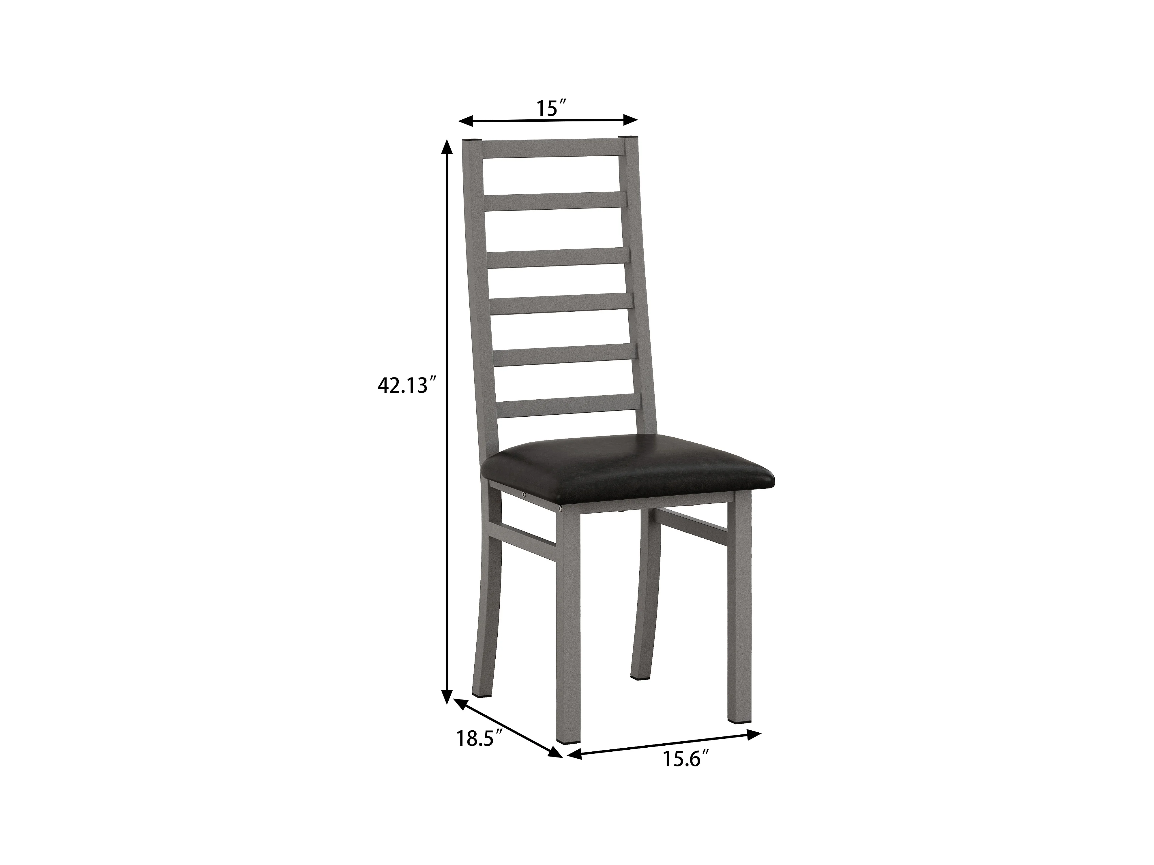 Juego de 2 sillas de comedor de metal y piel sintética con respaldo alto y sin reposabrazos, color gris
