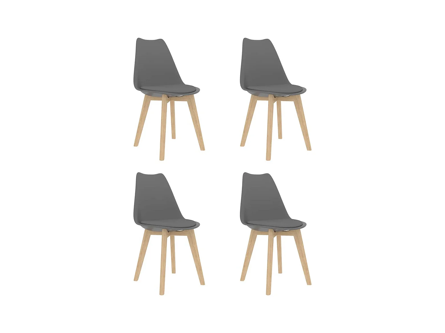 Juego de 4 sillas de comedor de tela gris oscuro y madera curvada