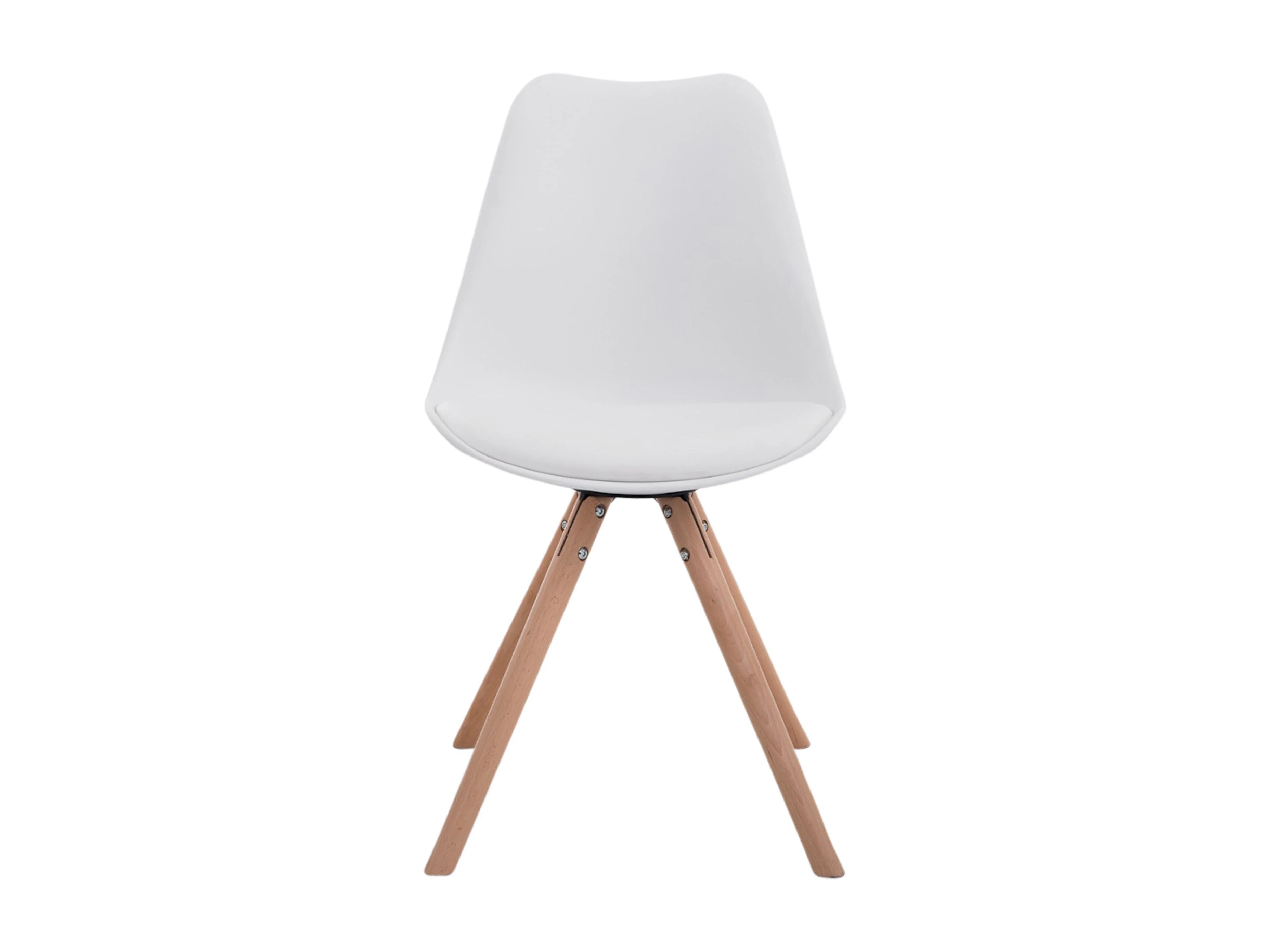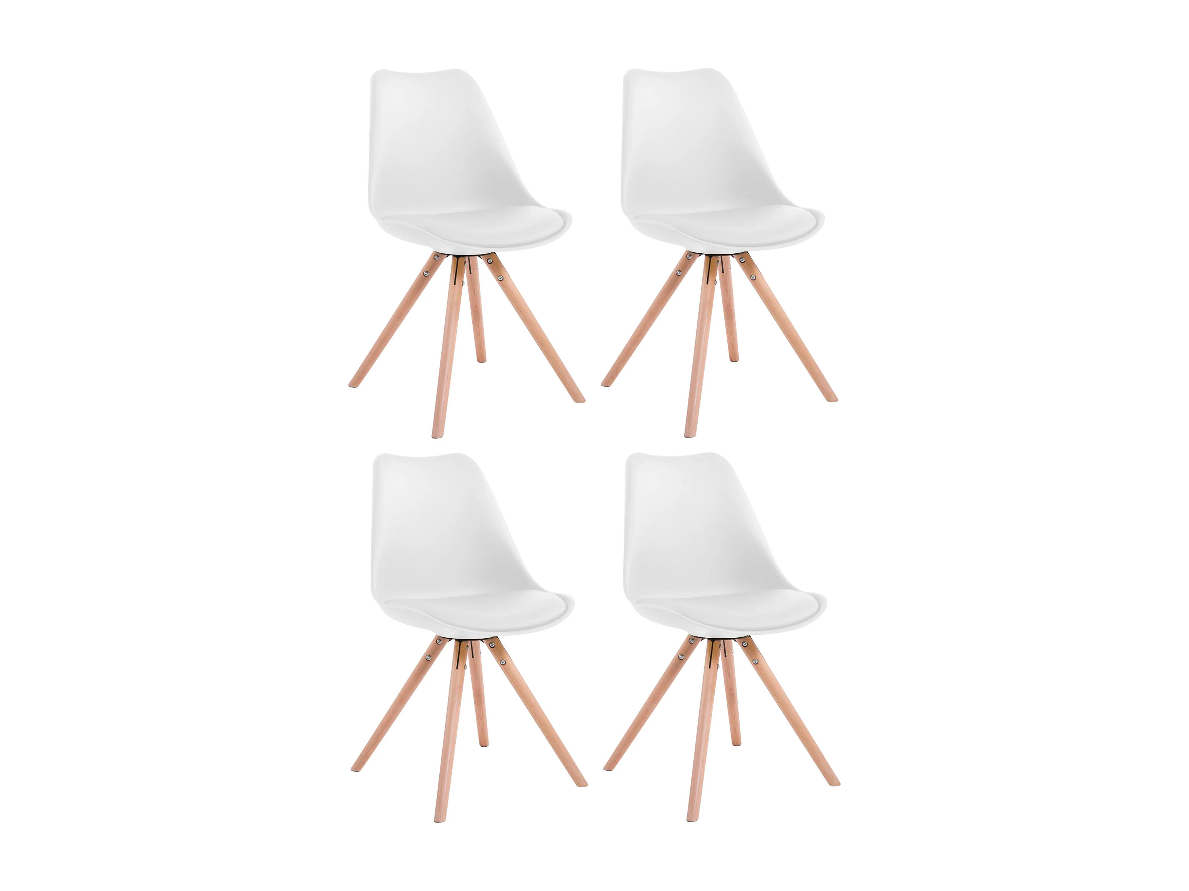 Juego de 4 sillas de comedor estilo escandinavo polipiel blanco pie redondo madera claro M10_001792