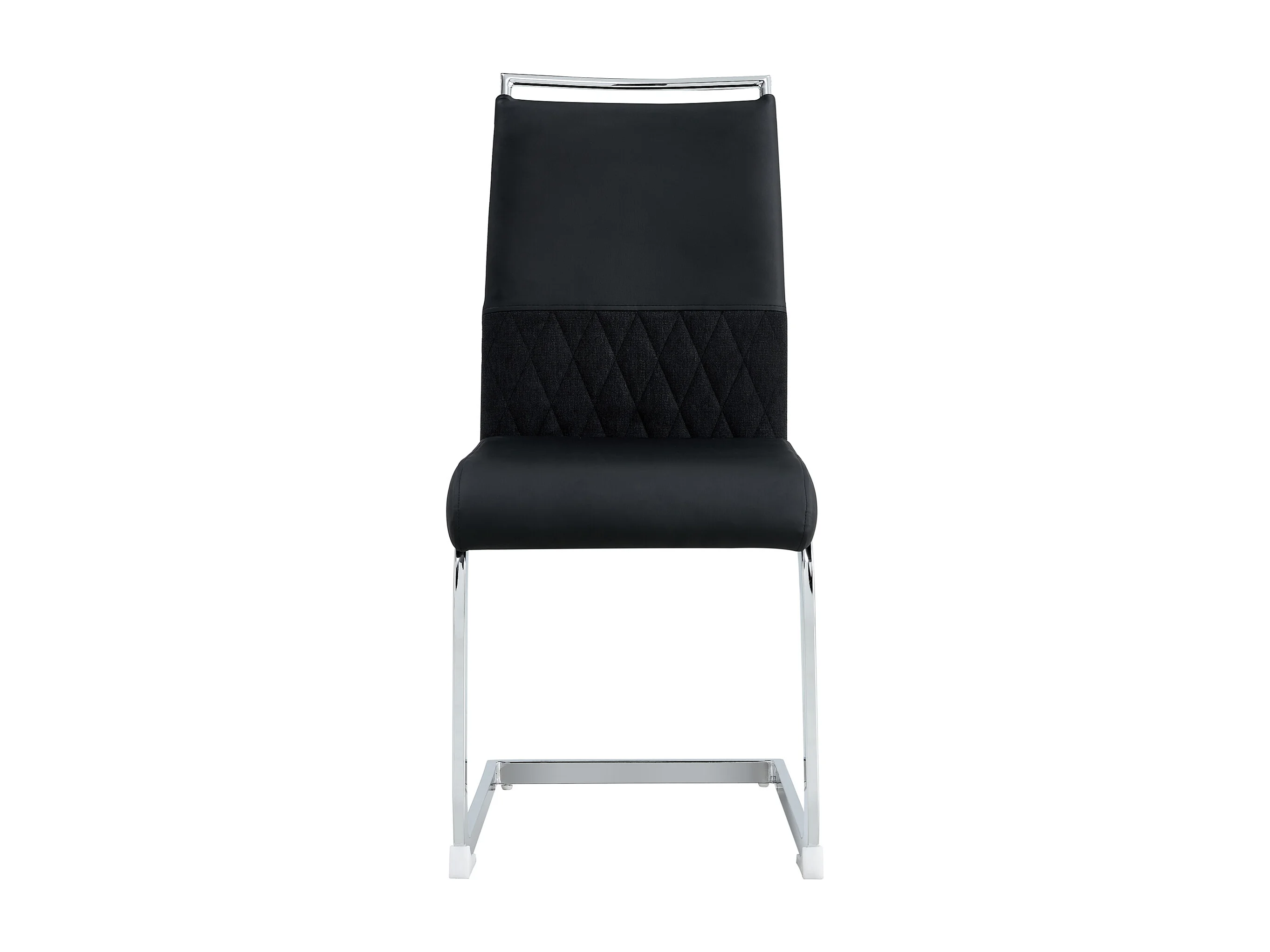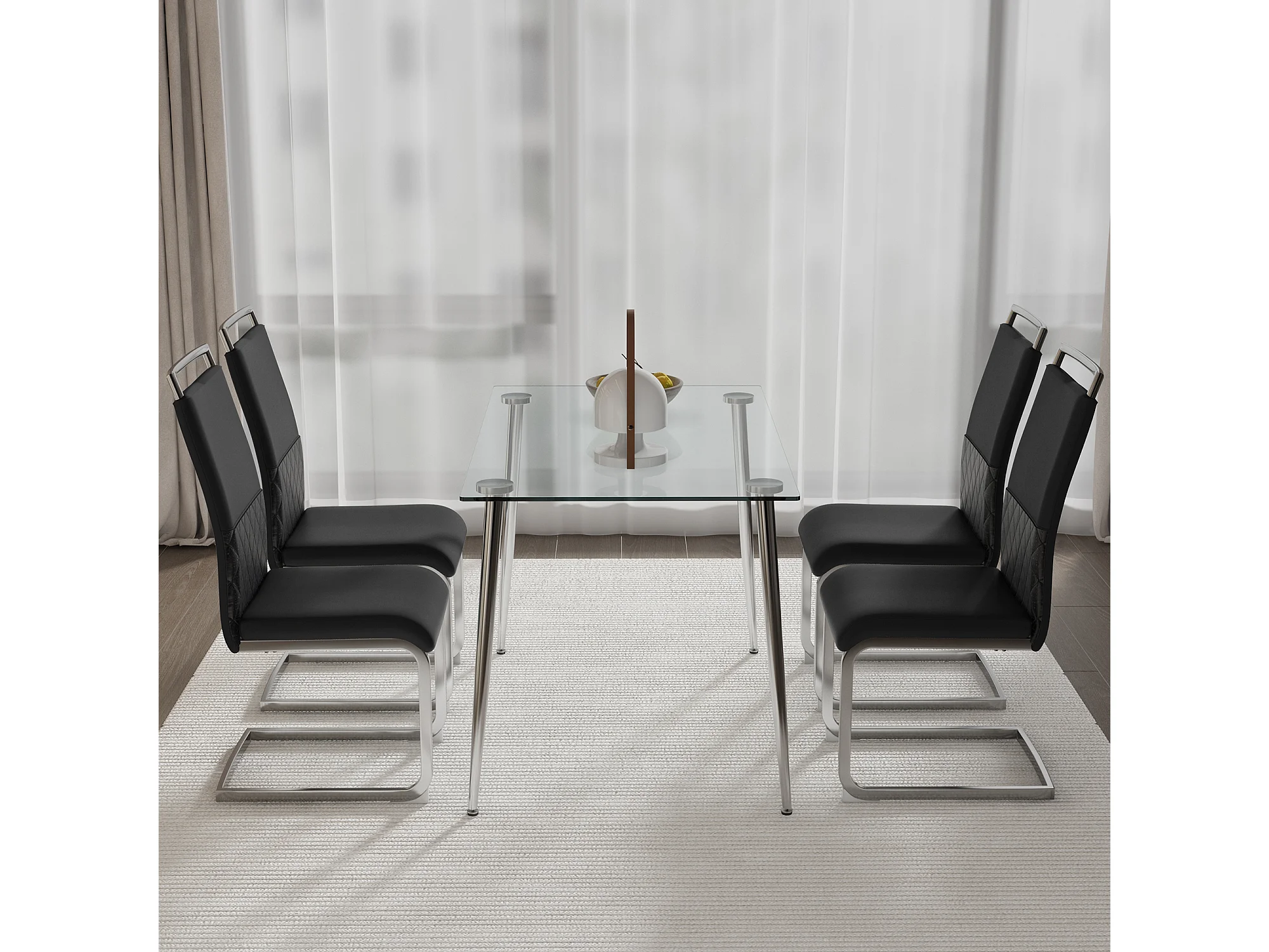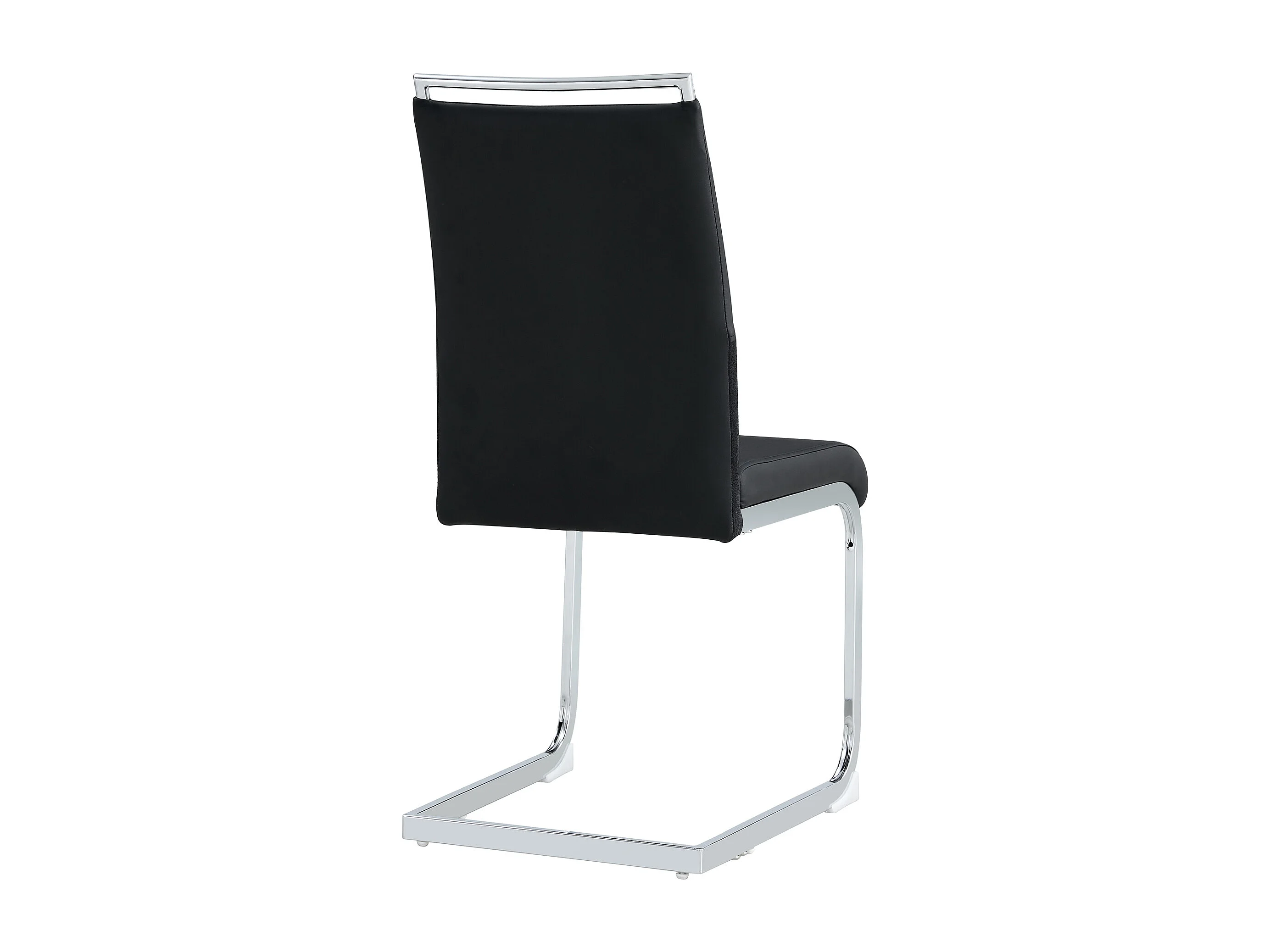Juego de 4 sillas de comedor negras - respaldo a rayas y 4 reposapiés - PU y lino