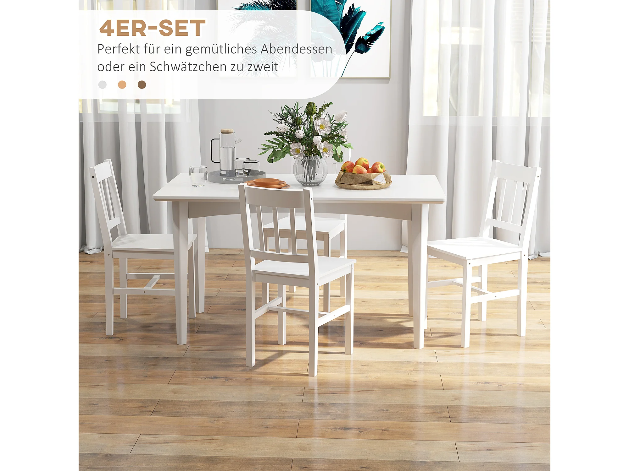 Juego de 4 sillas de comedor, sillas de cocina modernas con respaldo, madera de pino, color blanco